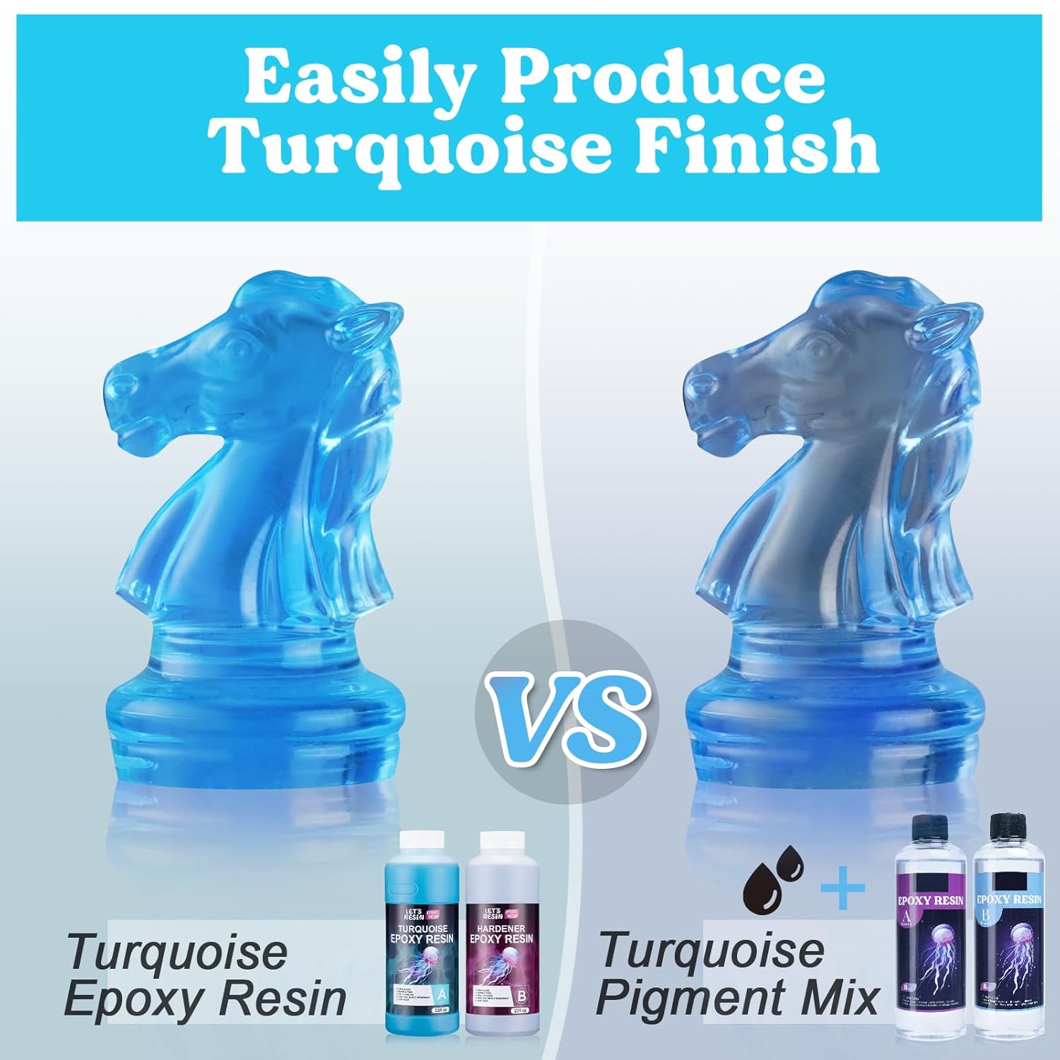 - 【Advanced Special Formula】Say goodbye to tedious color blending!This resin epoxy cures to a turquoise color. Achieve the perfect turquoise shade effortlessly, no need to mix dyes or pigments. This epoxy formulation is self-leveling, UV-resistant, bubble-free, and cures quickly in 24 hours. Excellent high gloss and hardness up to 85D.