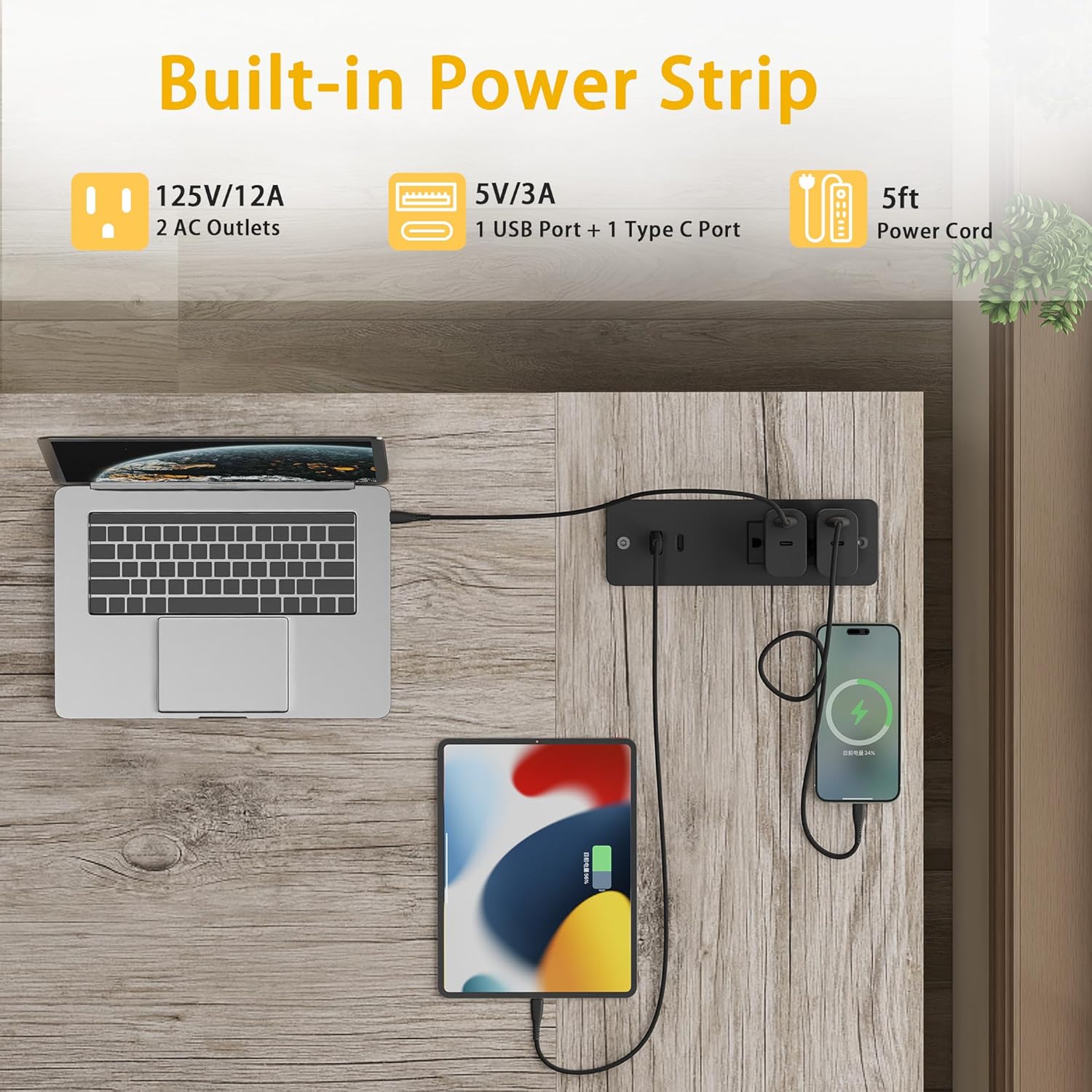 - [L Shape Desk with Power Outlets] The l desk has built-in power outlets featuring two AC outlets, one USB port, and one Type-C port, simplifying charging and cutting down on cable clutter.