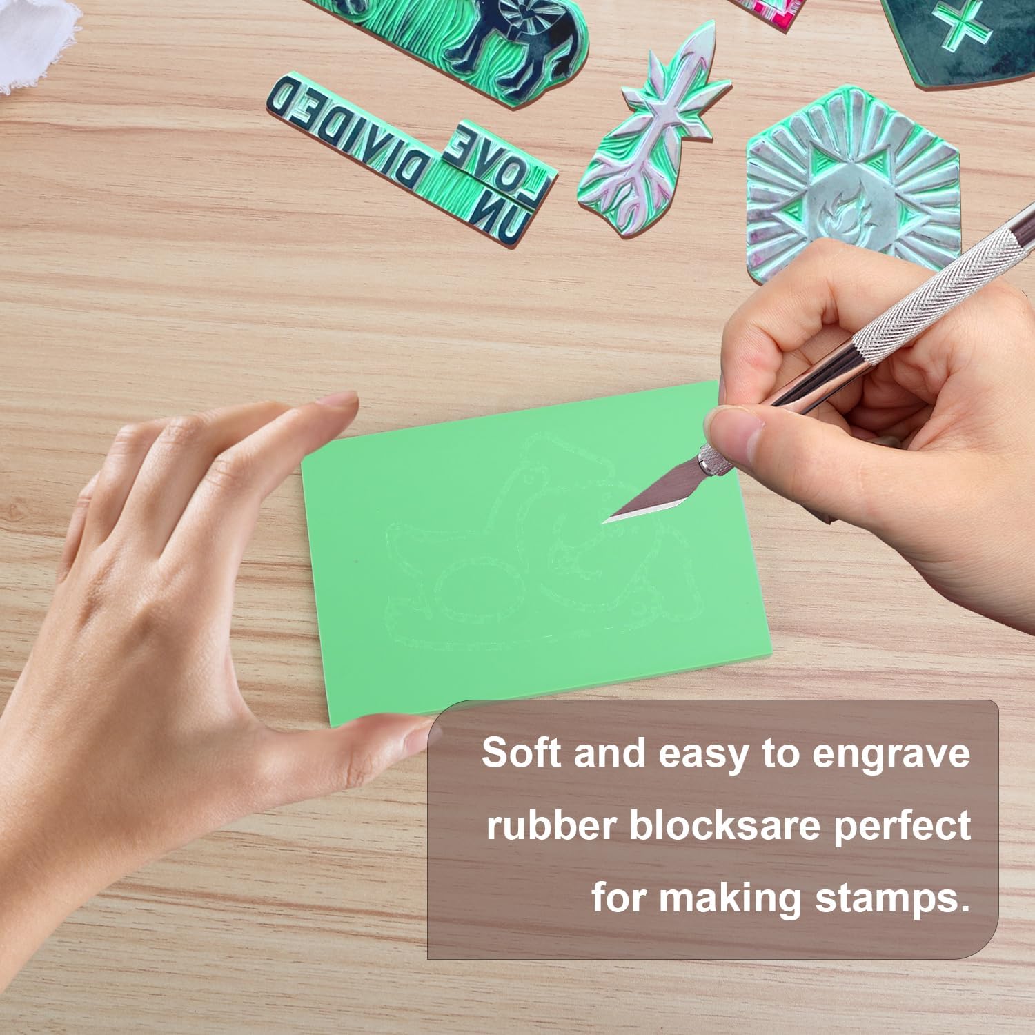 KUKLIPJIM 25 Pcs 4x6" Rubber Linoleum Stamp Carving Blocks for Printmaking, Artists, Crafts and More (Green)