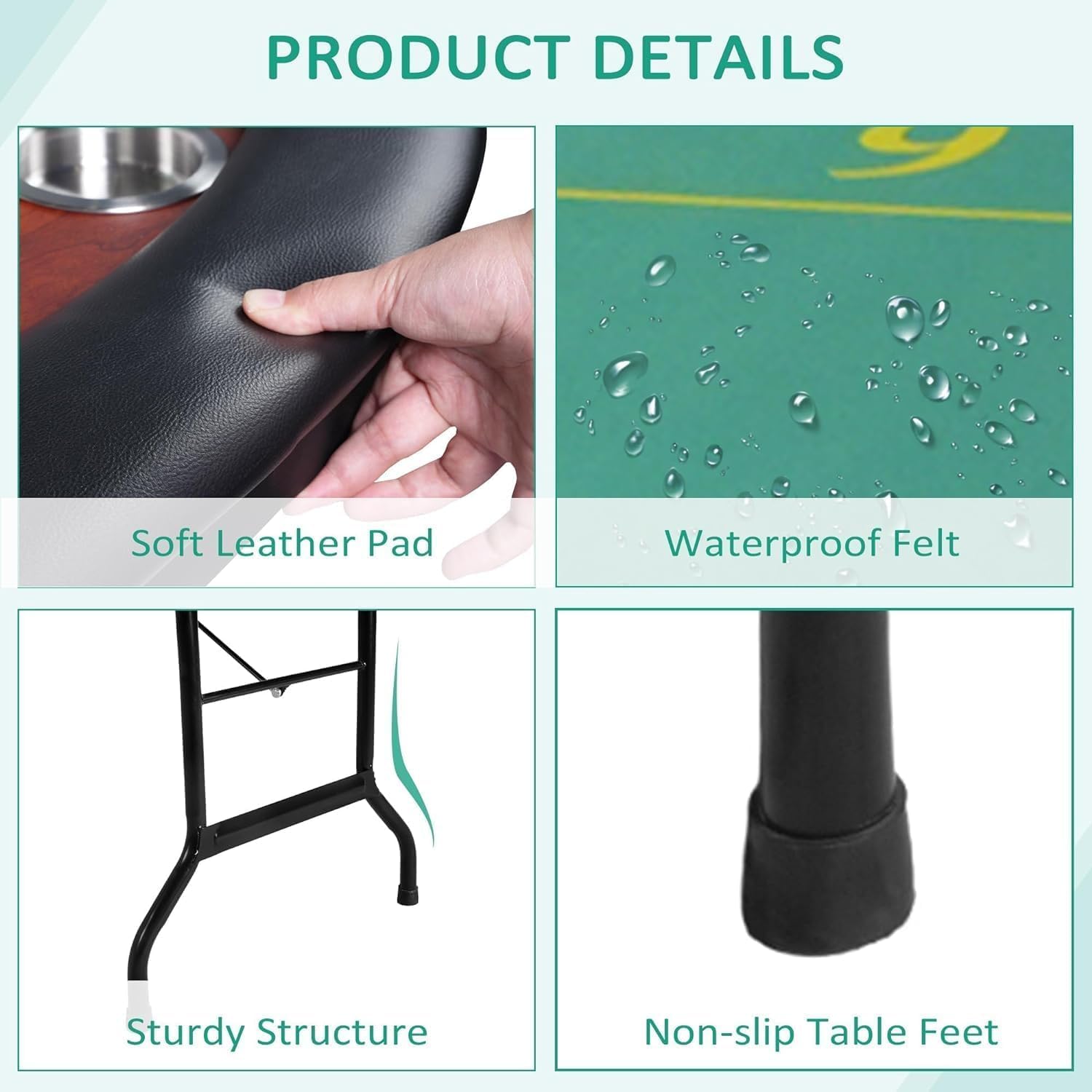- SOFT SURFACE & THICKENED EDGE: Equipped with traditional soft felt covering which providing proper friction, the poker table top can prevent excessive friction of the card and movement of the tablecloth. The thickened edge allows it to provide comfortable support and contact when you lean on the table.