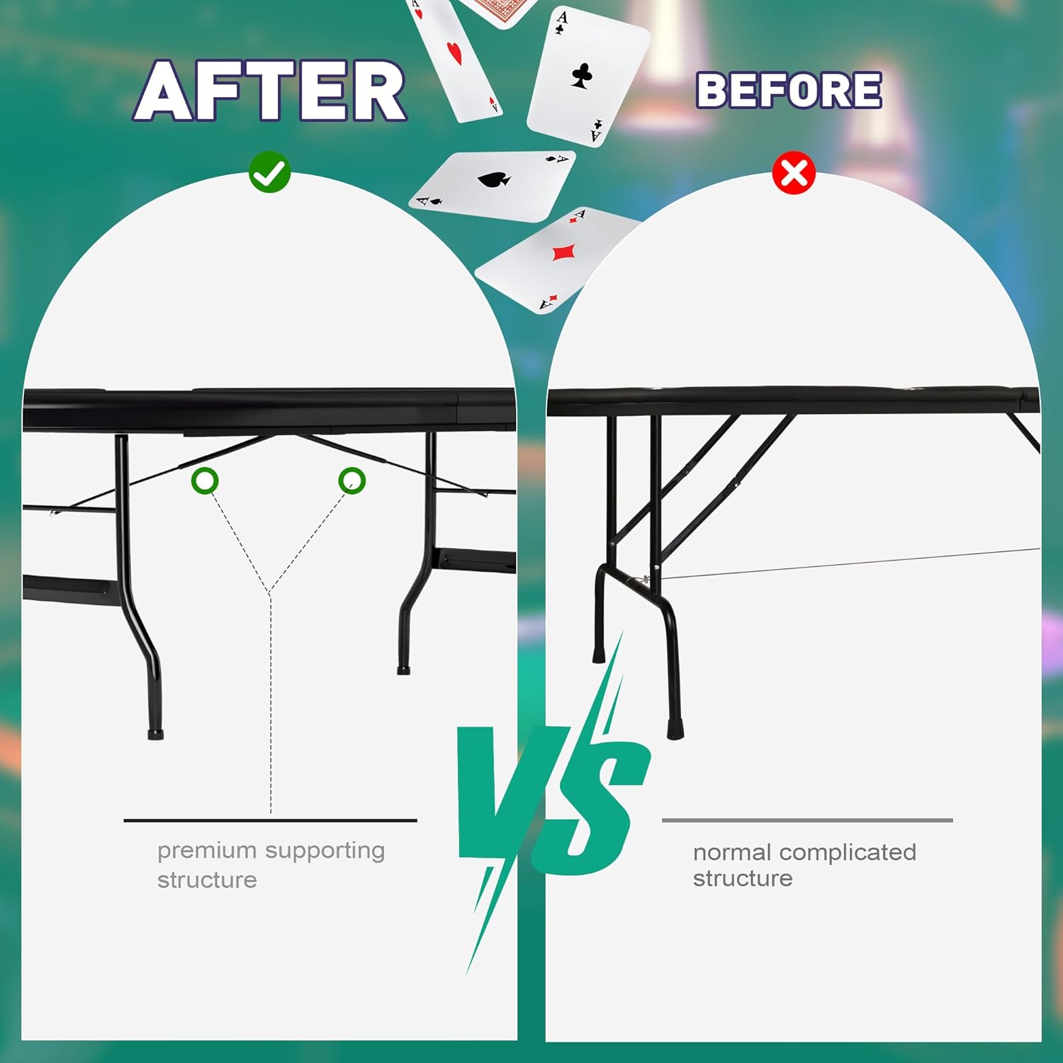 - DURABLE & STABLE CONSTRUCTION: Made of durable MDF material, steel frame and premium thicker steel tube, this poker table can support you for long-term use. The upgrade poker table does not require adjustment of steel wires, reducing operational troubles and being more sturdy than old one.