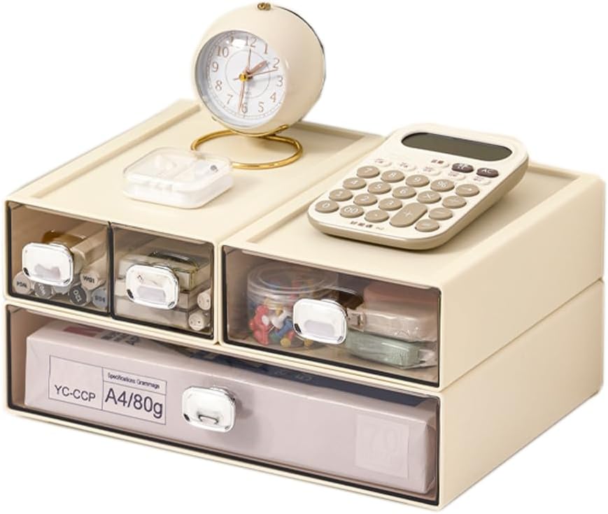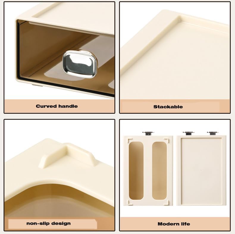 - Stackable,This desktop storage box has a modular design, you can stack it freely according to your needs or use it individually. The top of each box is recessed, and there are 4 non-slip feet at the bottom, it is not easy to slip off when stacked. This ensures that the drawer can be pulled out and pushed in smoothly and the box will not wobble. At the same time, the grooves on the top of each box can also be used to place items, saving desktop space.