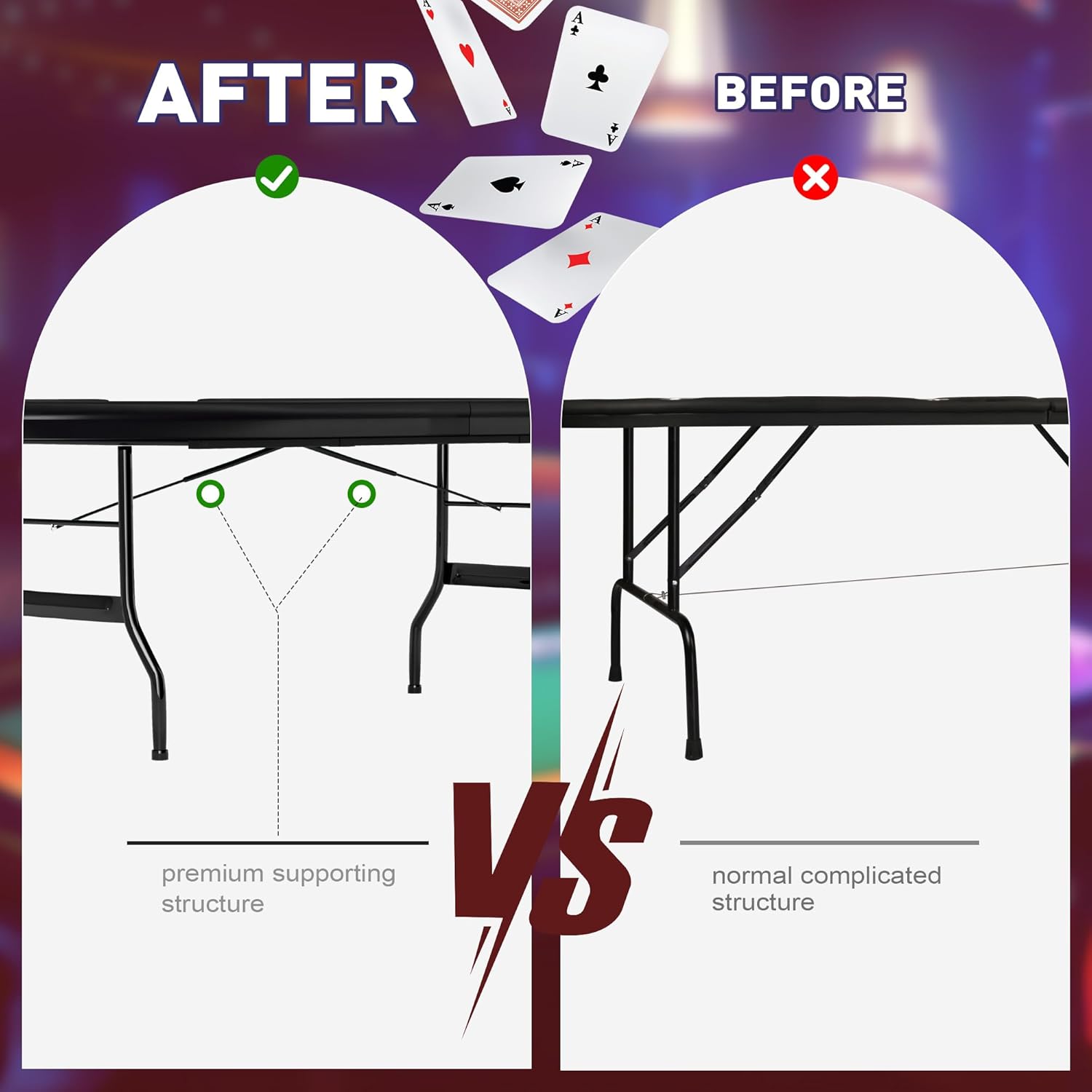 - No Assembly Required - Our pre-assembled poker table requires no installation hassle. Simply unfold and enjoy your gaming experience in no time, perfect for social gatherings with family and friends.