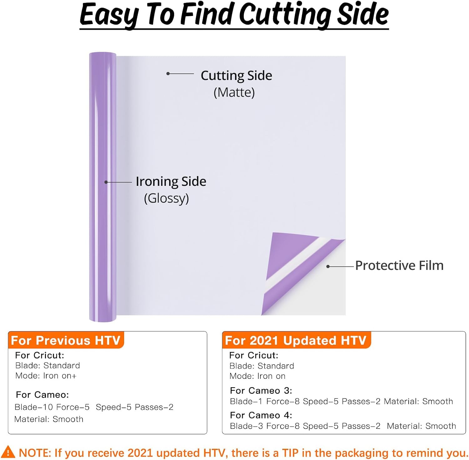 - 【 GREAT STICKINESS】 Our htv vinyl rolls is pretty sticky, they adhere to the fabric seamlessly and has held up well in the wash without fading, peeling and crack.Your designs of our lilac heat transfer vinyl will keep the same color and can't come off even after repeated washing cycles