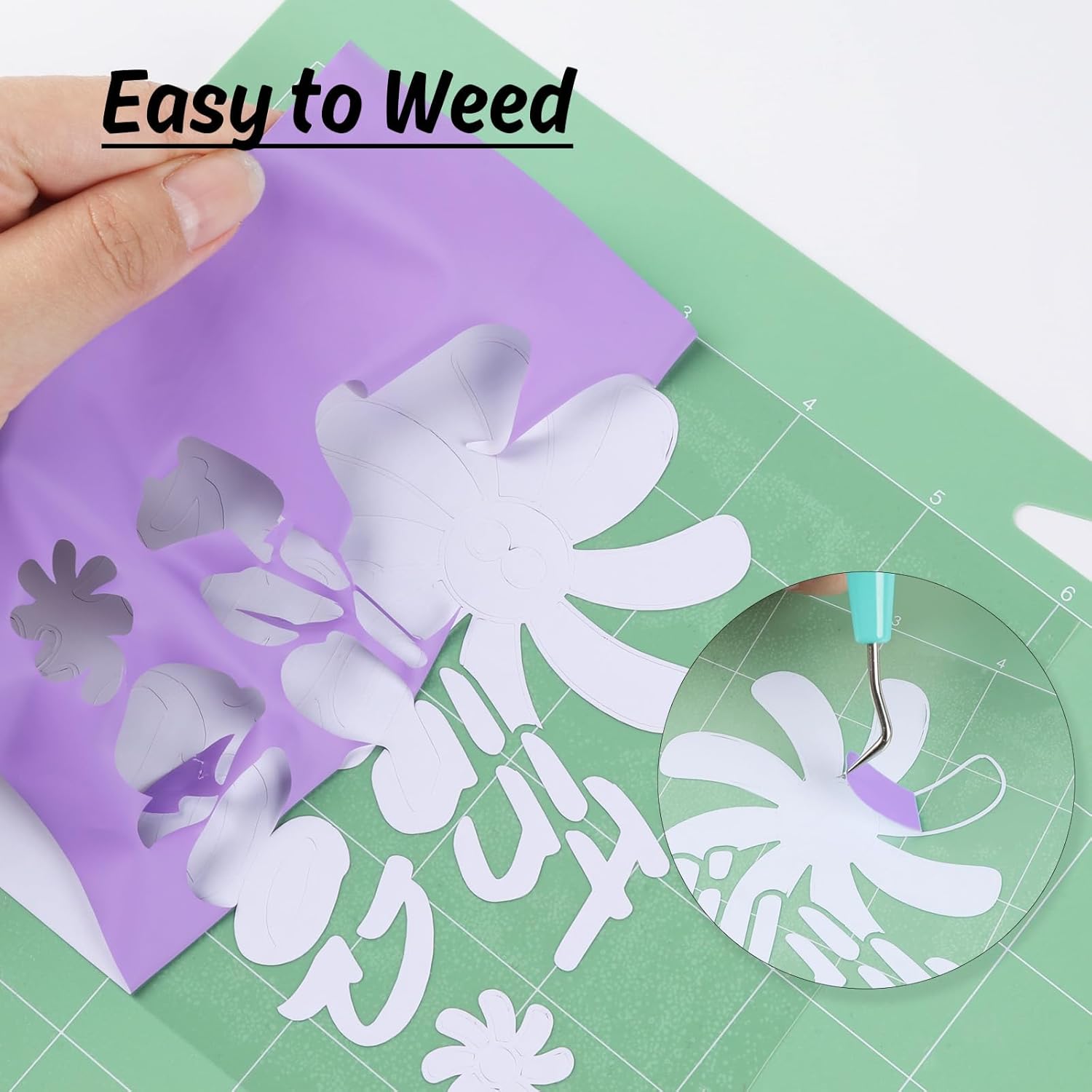 - 【EASY TO CUT & WEED & TRANSFER】 Our premium quality heat transfer vinyl will save your time which you may waste on each image or letter, because you can cut and weed easily through the designs just right.The iron on vinyl is sensitive to temperature and pressure, which can be heat transferred on any t-shirt easily