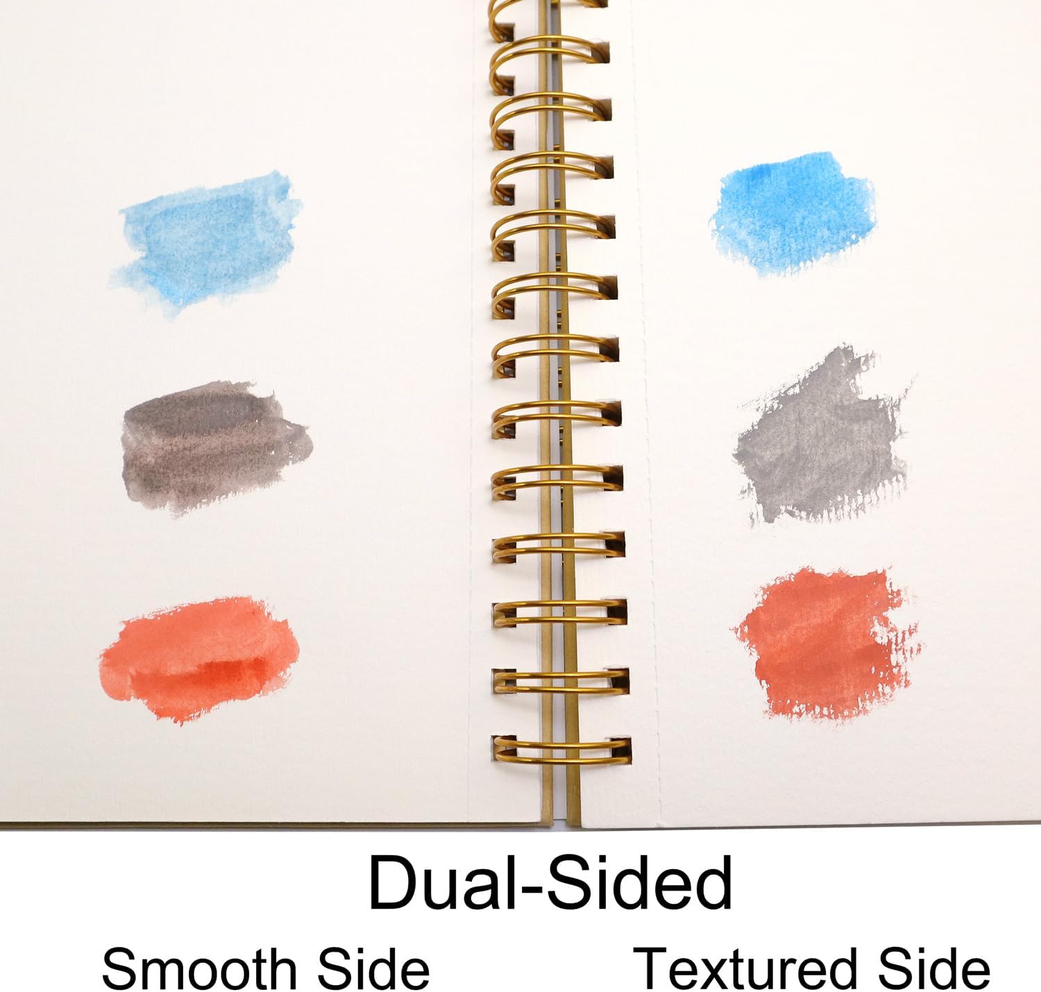 Watercolor Paper Pads, 5.5x8.5, 3Pack, Kraft Hardcover Sketch Books, 140lb/300gsm Heavyweight Cotton Paper, Spiral Bound, Cold Pressed, Dual-Sided(Smooth&Texture), Painting Paper for Artists Students