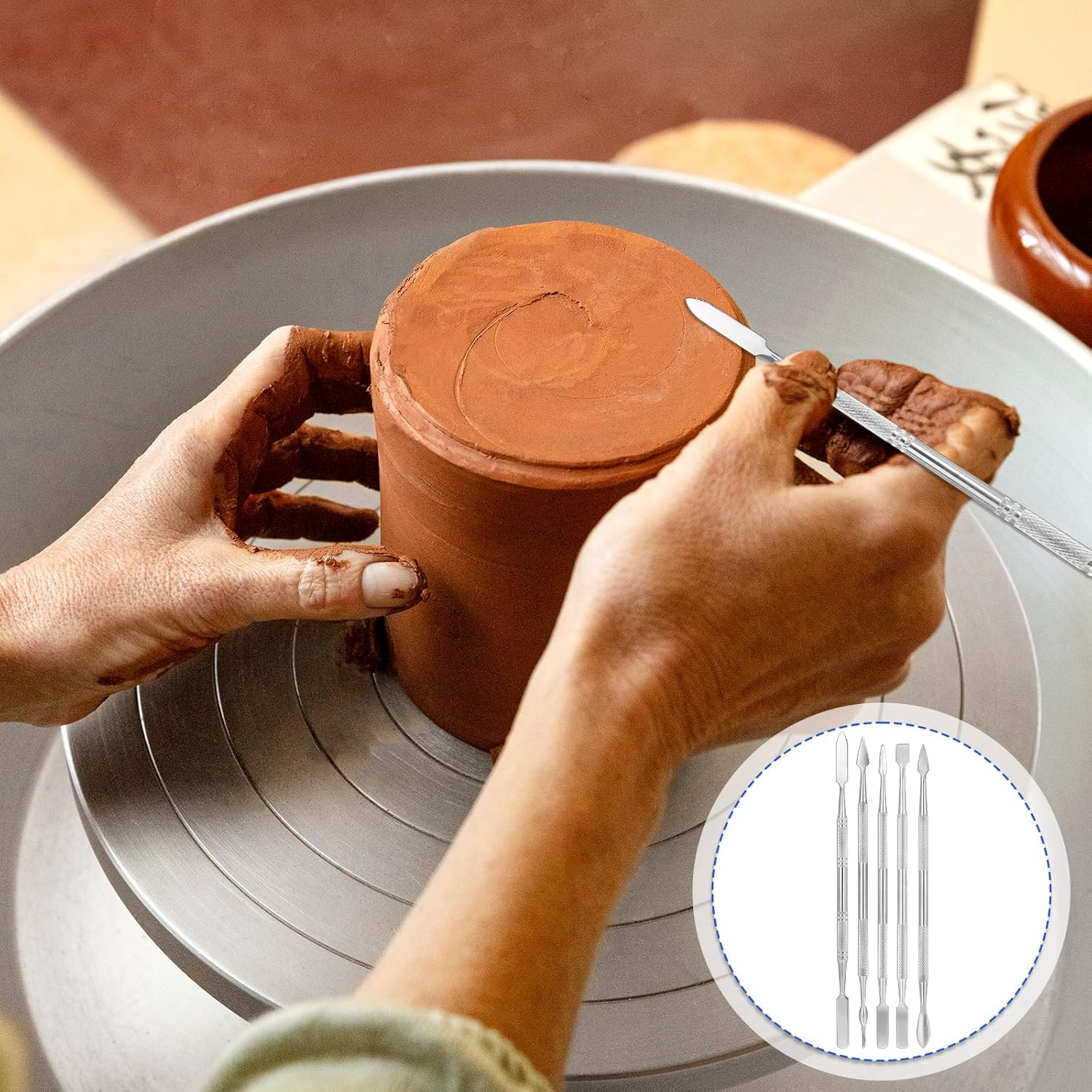 Clay Sculpting Tools, 5 PCS Stainless Steel Pottery Spatula Wax Carving Tools Set Double-Ended Polymer Clay Tools Kit for Modeling, Embossing, Sculpting and Shaping Miniatures