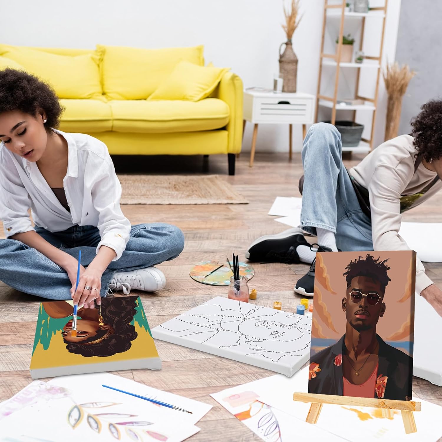 - Value Package: pre printed canvas for painting package includes 12 pre painted canvases, 12 paints in12 colors, 12 flat pen, 12 pointed pen, 12 palettes in 6 colors, 12 wooden easels, 12 sample images; Whether you have an art party or just want to relax and paint, canvas with pictures to paint has got you covered; Note: The paint set is placed in the back of the drawing board