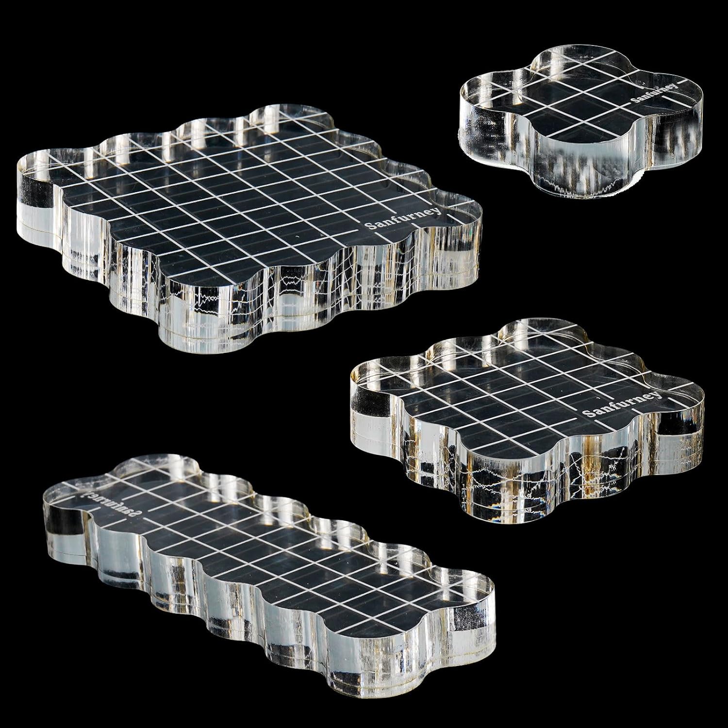 Sanfurney 4 Pieces Acrylic Stamp Blocks Set, 15mm Thick, Clear Stamping Tools with Grid Lines Decorative Stamp Blocks for Scrapbooking Crafts Card Making