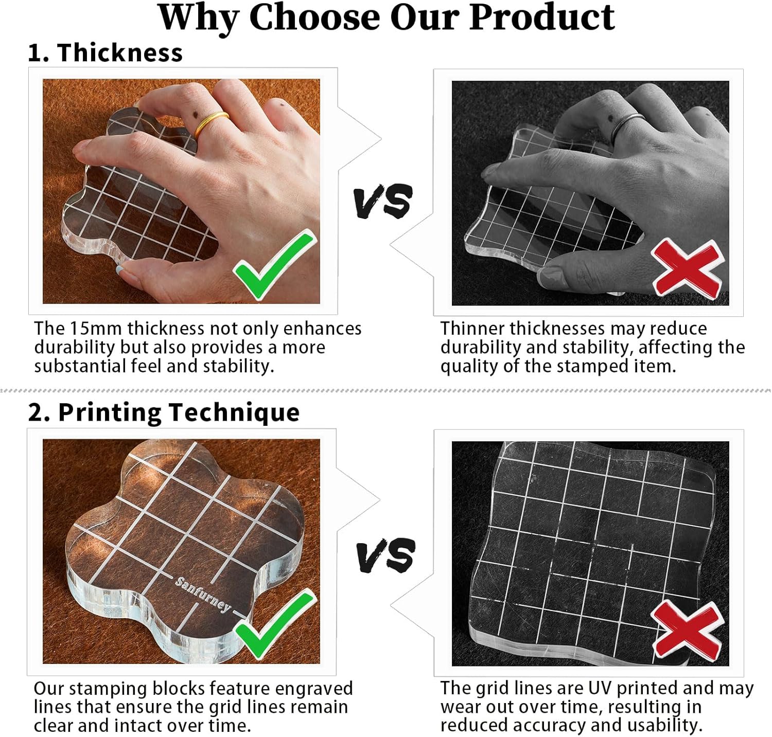 - Wavy Design - The acrylic clear stamp block has wavy edges for easy gripping and is smooth and comfortable to use, so you don't have to worry about scratching your hands.