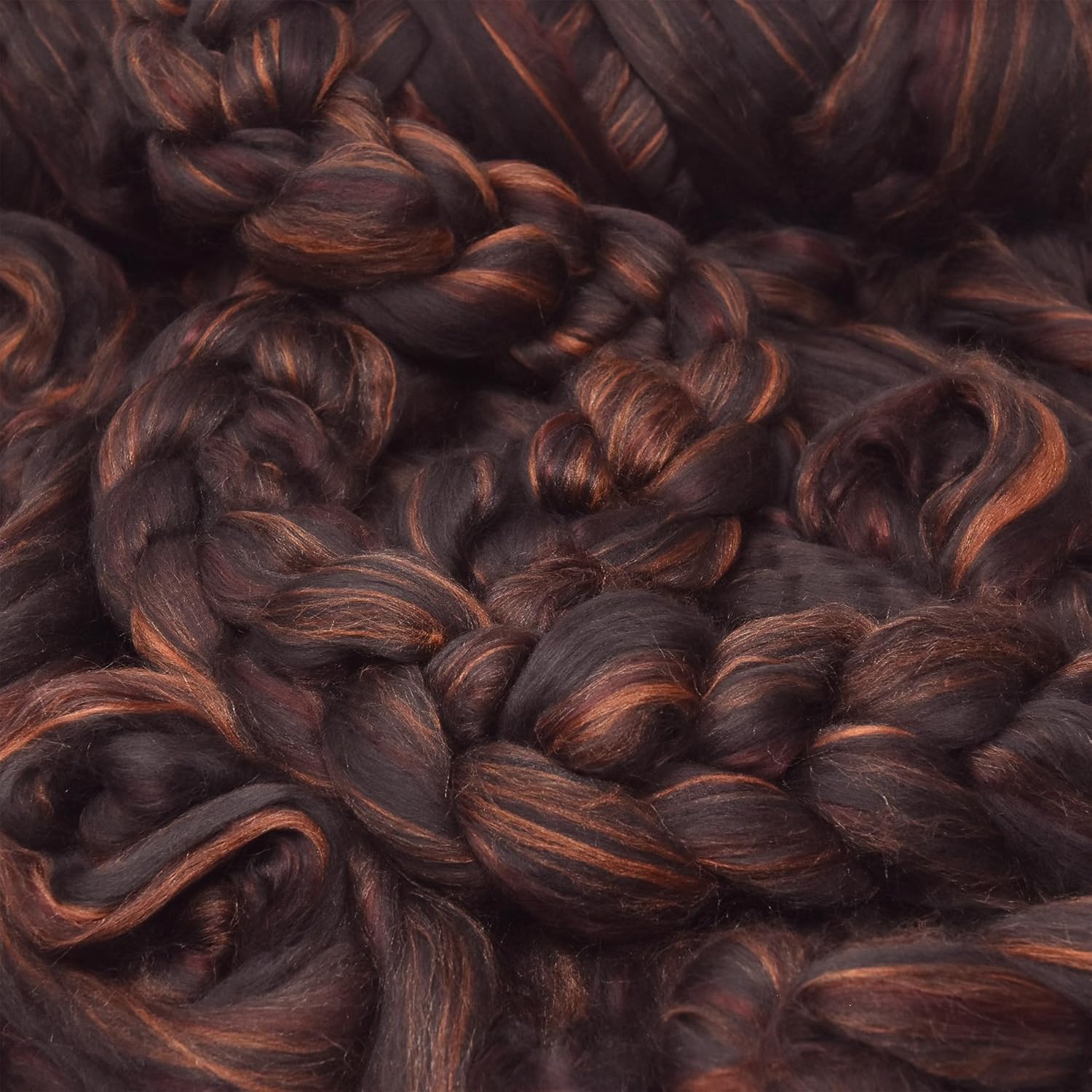 Merino Silk Luxe Tonal Designer Blend. Superfine Merino, Mulberry Silk, Tussah Silk. Top Roving for Spinning or Felting. Chestnut Velvet 4oz