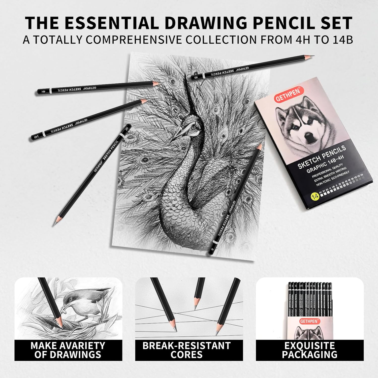 - TOP -QUALITY - The GETHPEN art pencils are sturdy hexagonal barrel. The graphite is even, smooth, blends easily. pencils conform to ASTM D-4236 and EN71 standards.A smooth writing feeling, top-quality sketch pencil for writing