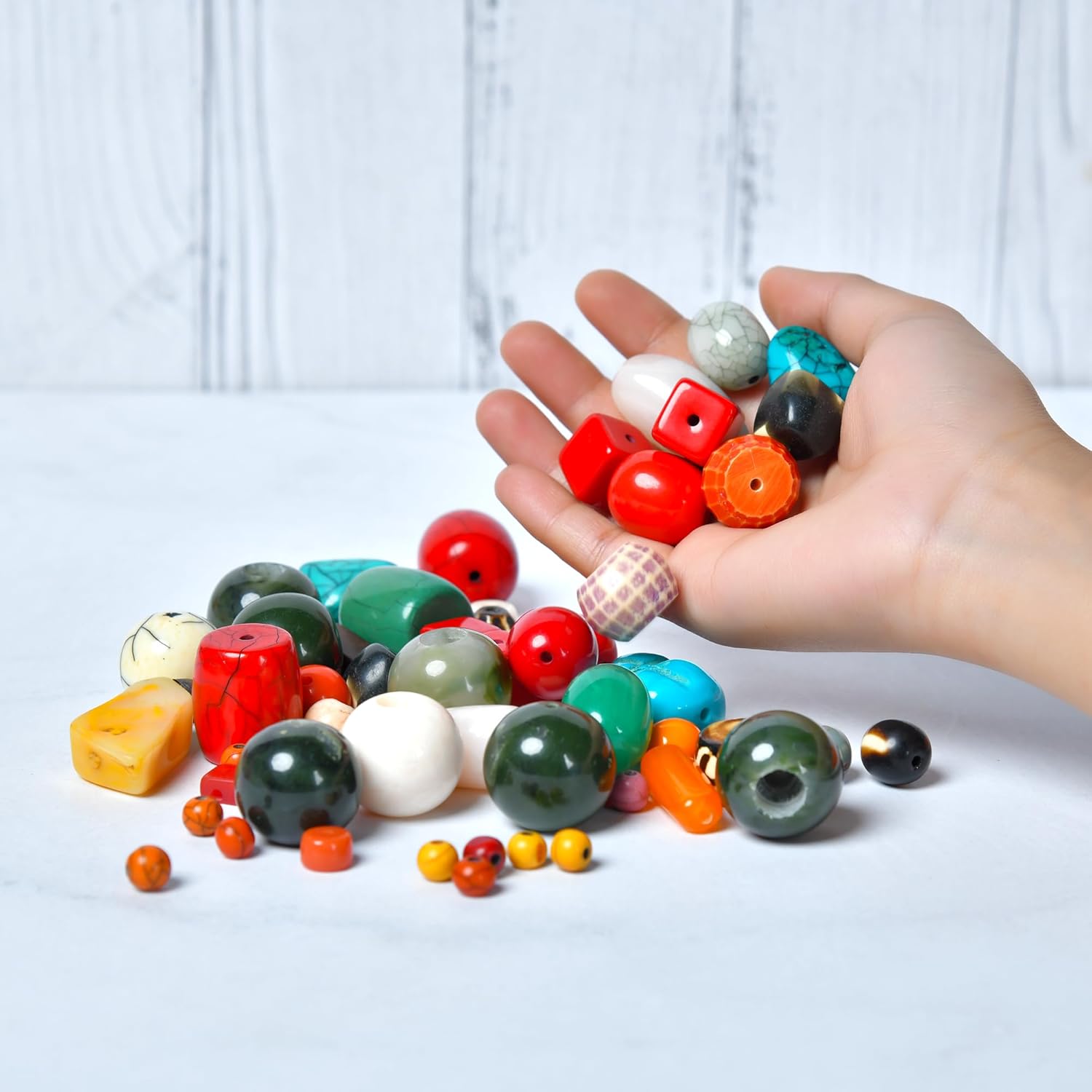 1/2 LB Bag of Assorted Resin Beads for Jewelry Making, Bracelets and Necklaces, Crafting Beads Supplies Kit, Large & Small Beads