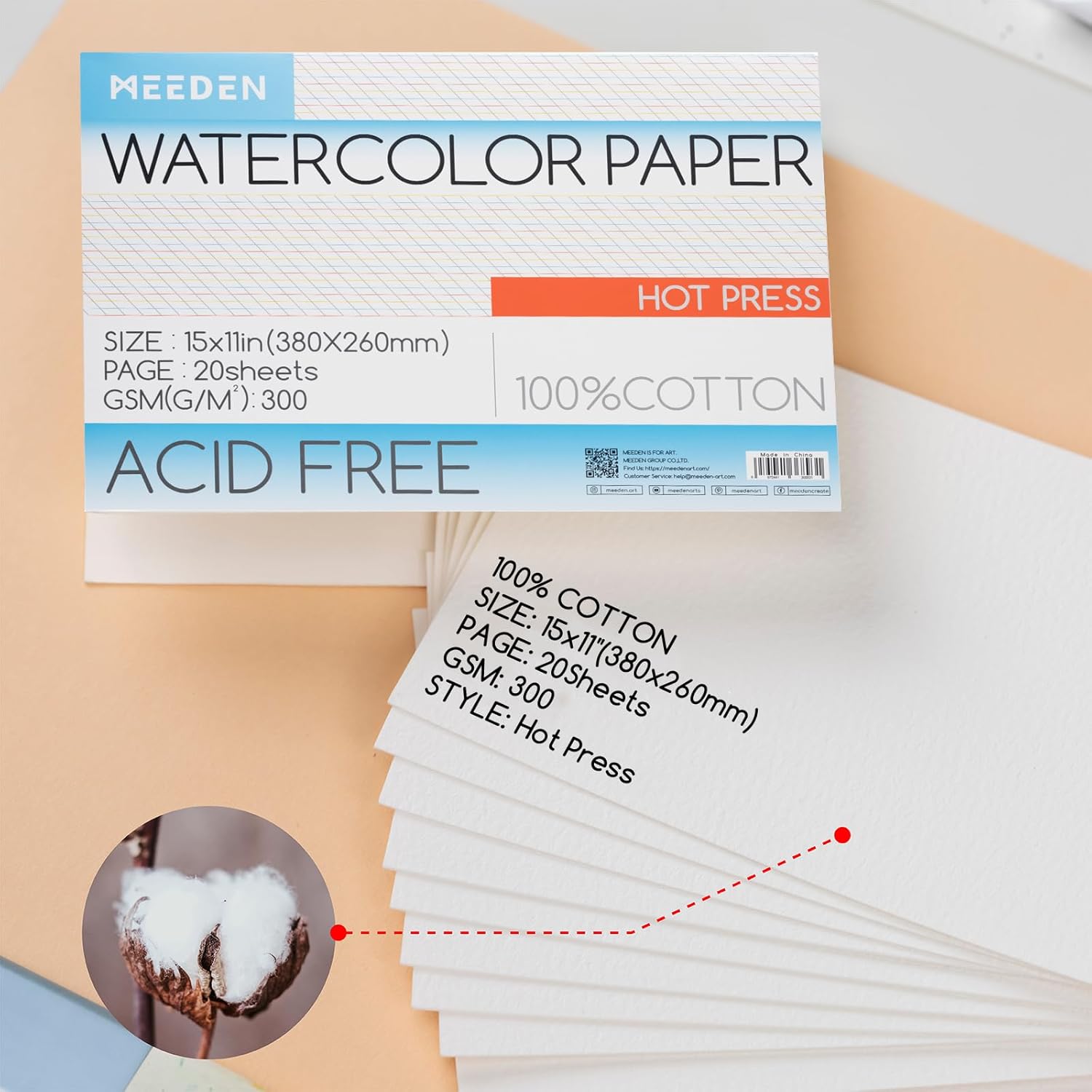 - PERFECT FOR ALL: MEEDEN Watercolor paper block works excellently with all wet or dry media, including watercolor, gouache, ink, pencile, etc. Its surface withstands scraping, erasing, and repeated washes, making it highly suitable for better paint performance and durability. MEEDEN watercolor paper is available in multipl sizes and 3 revered textures: cold press, hot press, and rough.