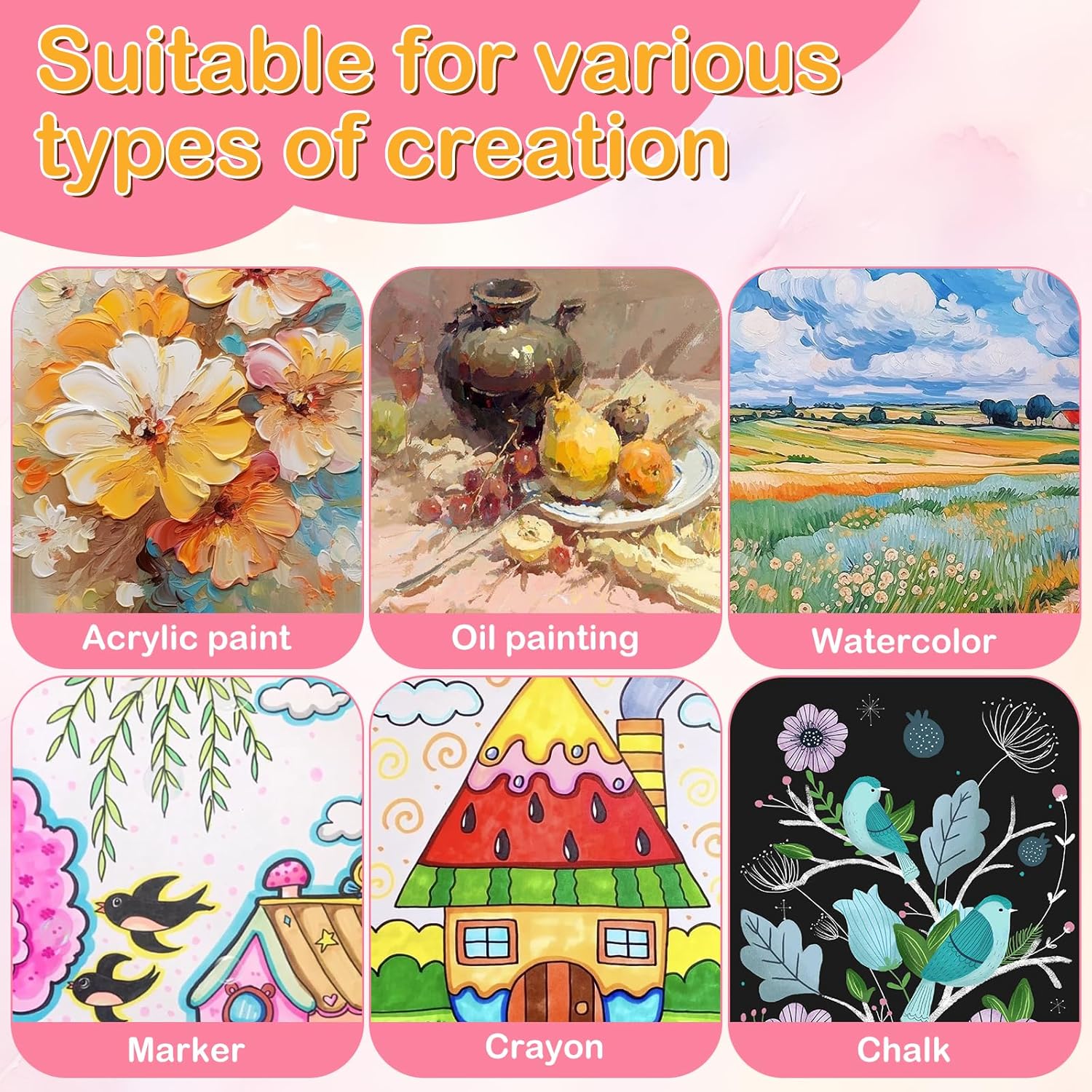 - 【Pure Cotton 3x3 Canvas】Our canvas boards are made of pure cotton material, the surface is smooth, which can holds the paints well.