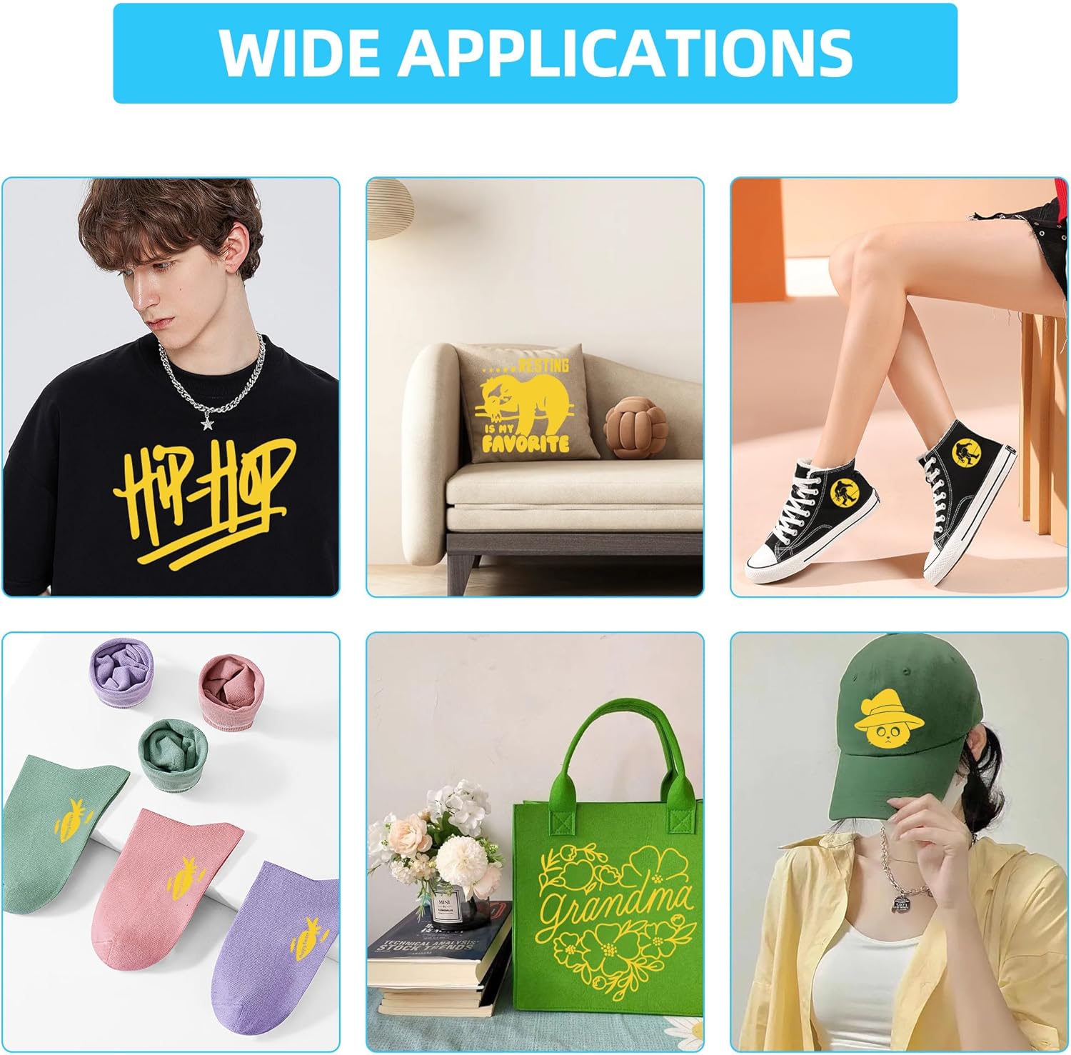 - WIDE APPLICATIONS: Suitable for use on sports mesh fabrics, cotton, polyester, cotton blends, lycra/spandex, and more. Whether you're making bags, shirts, sportswear, shoes, aprons, or pillows, our yellow htv vinyl will elevate your creations for holidays, parties, or everyday wear, ensuring impressive results for various occasions like birthday, mother's day, Halloween, independence day, Christmas and so on