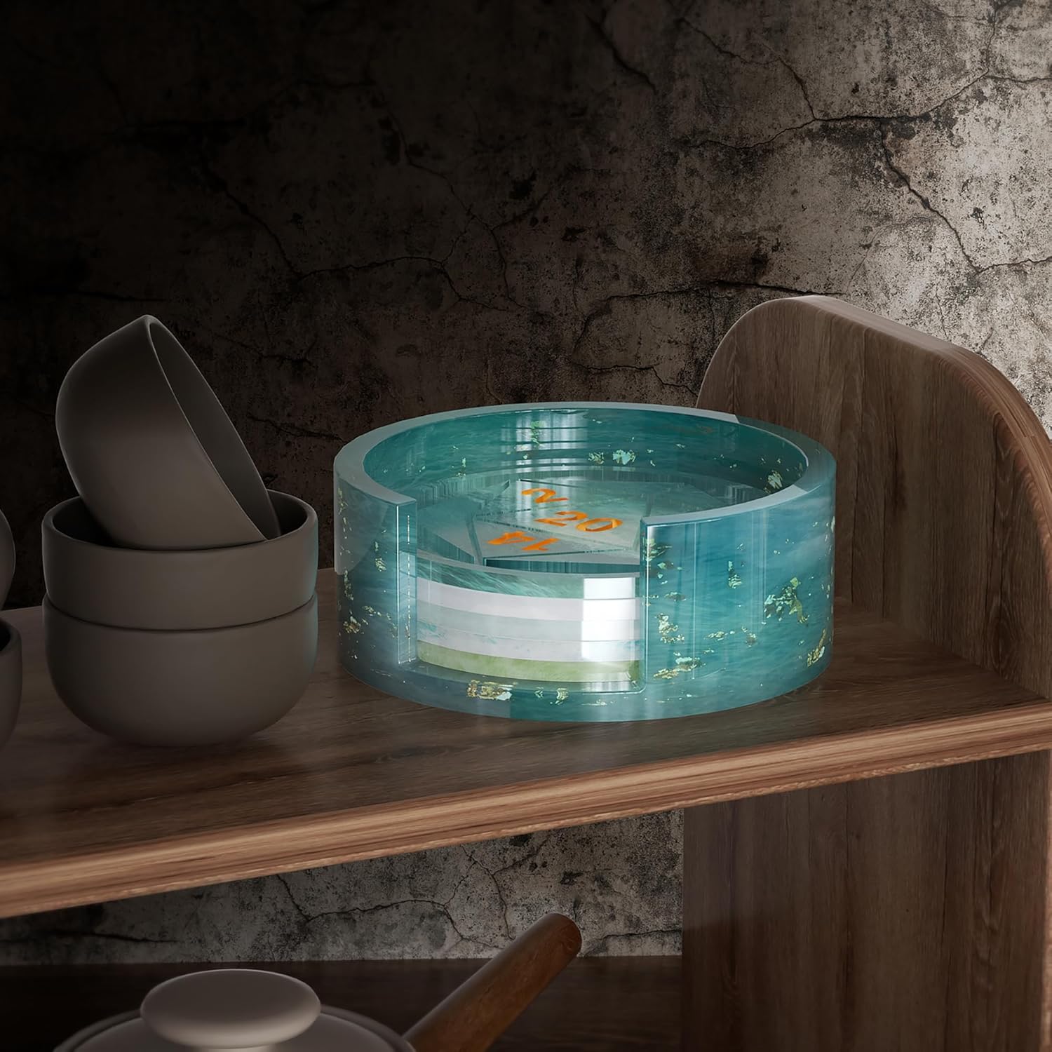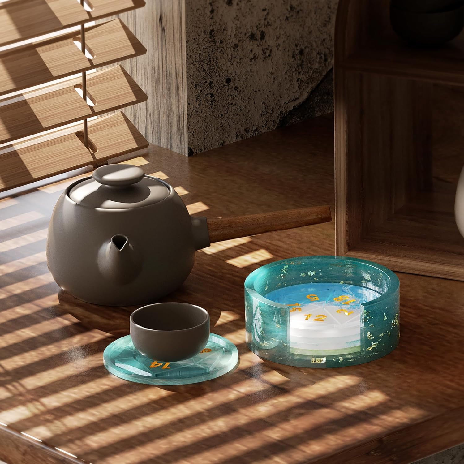 - PRODUCT SIZE: This Mold include 1 piece silicone coaster holder mold + 5 pieces coaster mold, mold size is show in the picture.