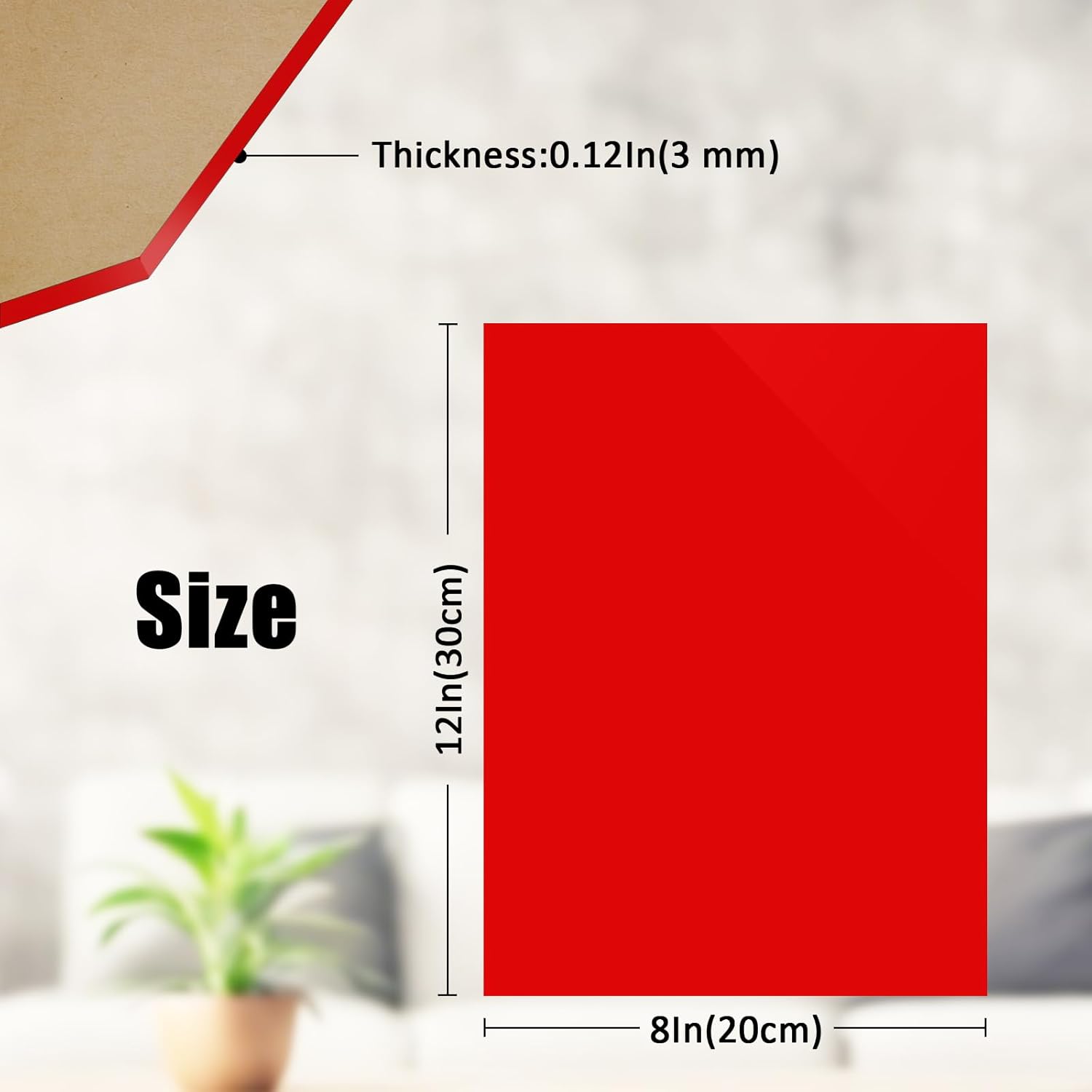 - Thickness: The thickness of these red acrylic sheets is 1/8 inch (or 3mm). This thickness provides strength and durability while maintaining flexibility for easy handling and manipulation during crafting processes.