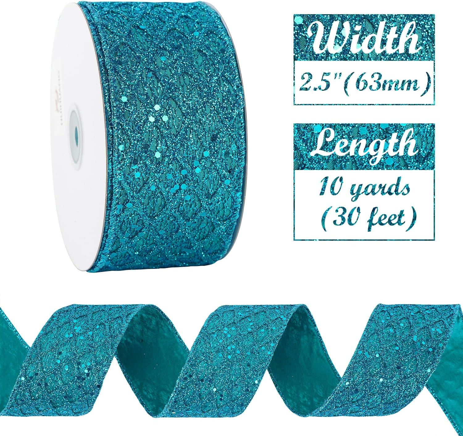 - Color: Turquoise blue sparkly glitter ribbon brings a bright and beautiful sparkly touchness to your decoration craft ideas and holiday gift wrapping, especially for Christmas tree decorations