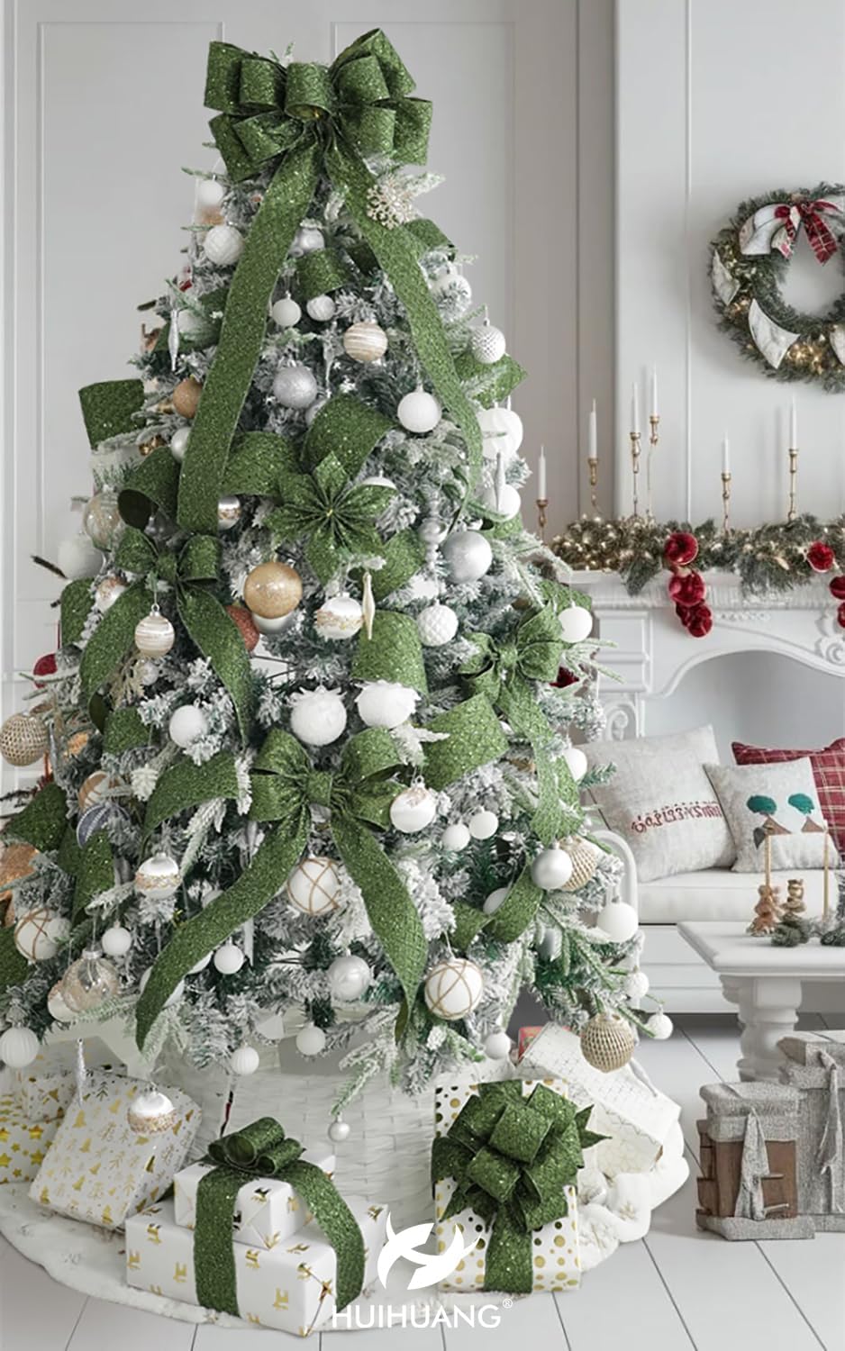 - Application: This ribbon can be used in a variety of Christmas decorations, including tree trimming, wreaths, garlands, gift wrapping, table centerpieces, swags, door hanger, lantern, tree topper bows, moss green color theme Chrisrmas decor etc
