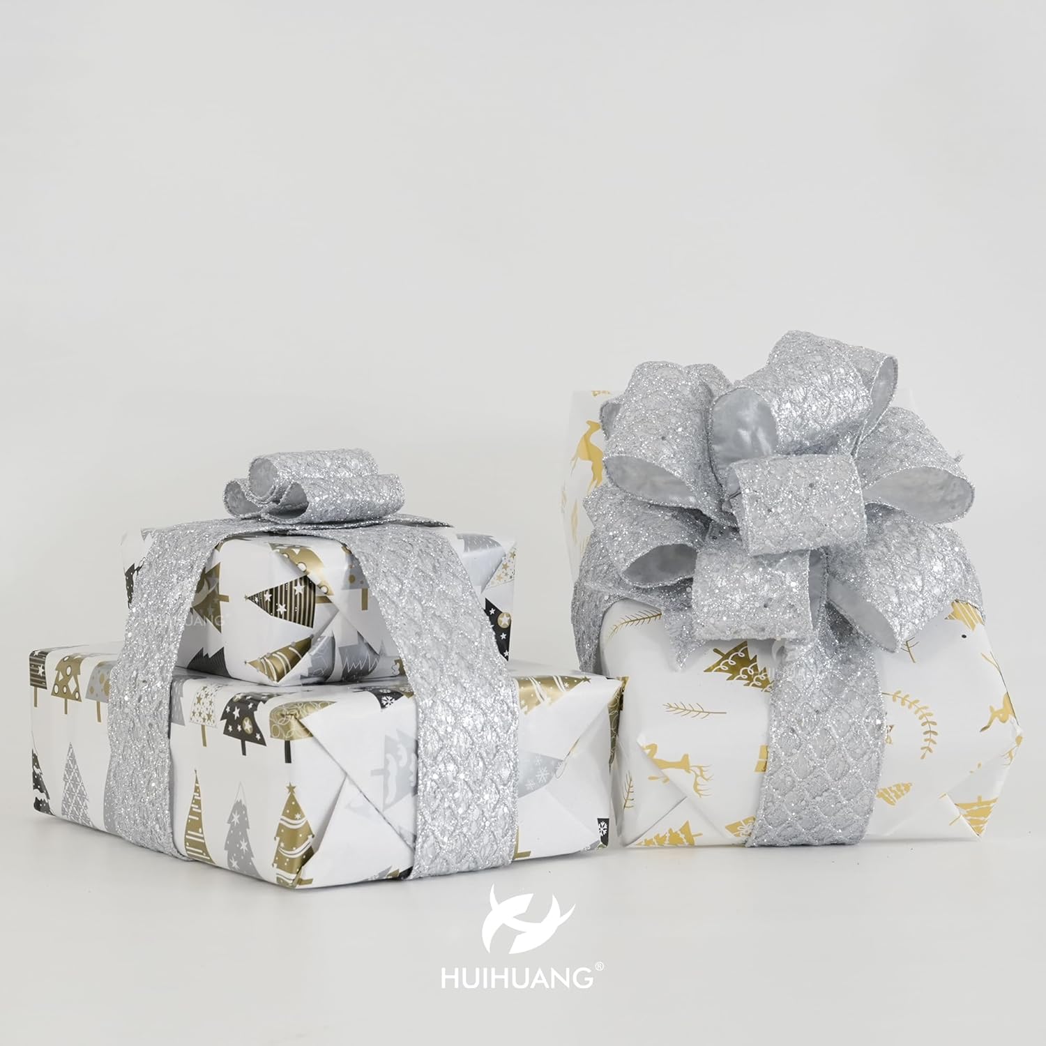 - Application: This ribbon can be used in a variety of Christmas decorations, including tree trimming, wreaths, garlands, gift wrapping, table centerpieces, swags, door hanger, lantern, tree topper bows, silver color theme Chrisrmas decor etc