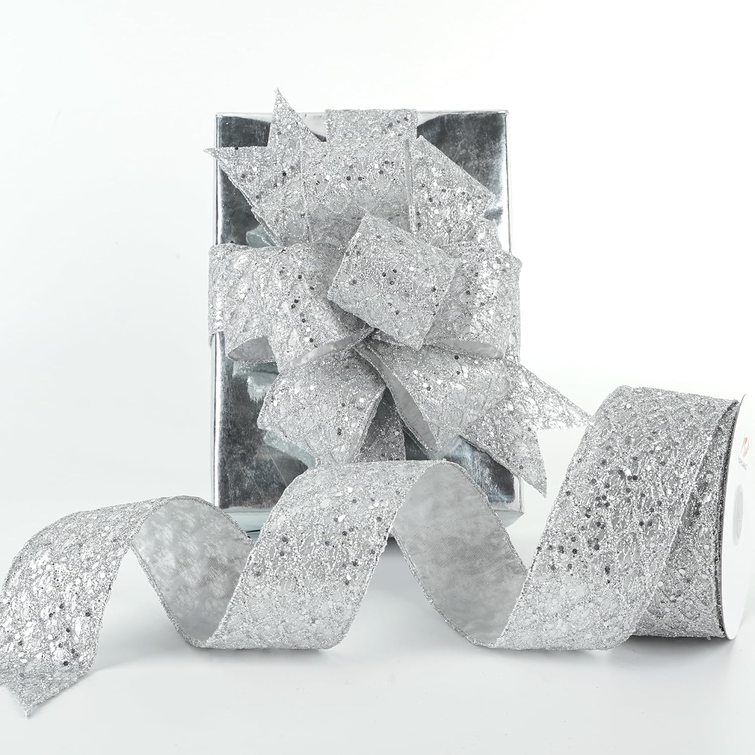- Color: Silver glitter wired ribbon brings a bright and beautiful sparkly touchness to your decoration craft ideas and holiday gift wrapping, especially for Christmas tree decorations
