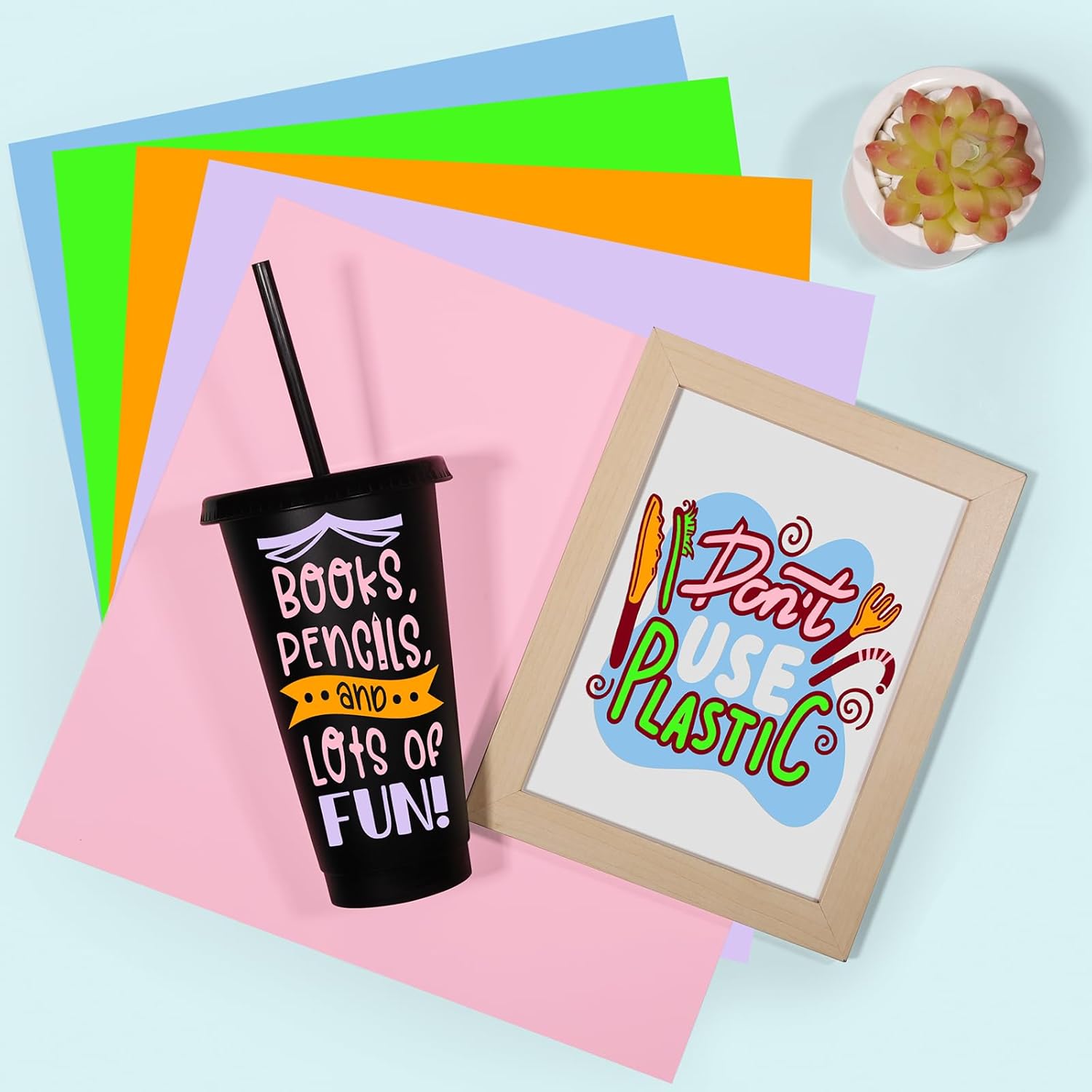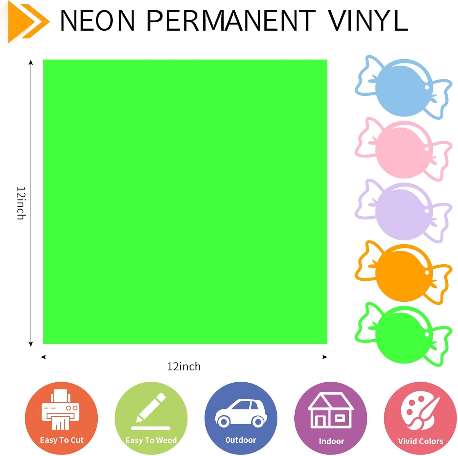 - Bright Permanent Adhesive Vinyl : This neon vinyl is designed to stay put once applied, ensuring that your creations maintain their quality and appearance over time.Packge including neon green vinyl,purple,neon pink vinyl,bright blue vinyl,neon orange vinyl