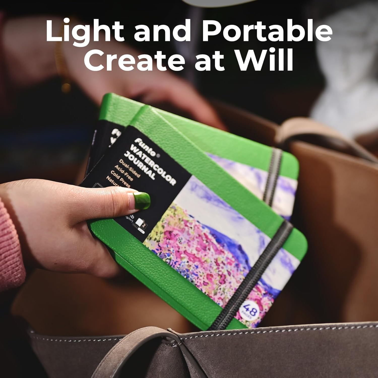 Funto Watercolor Journal, 3.5x5.5, 2 Pack, 24 Sheets Each, Green Cloth Cover, 110lb/230gsm, Suitable for Techniques and Mixed Media