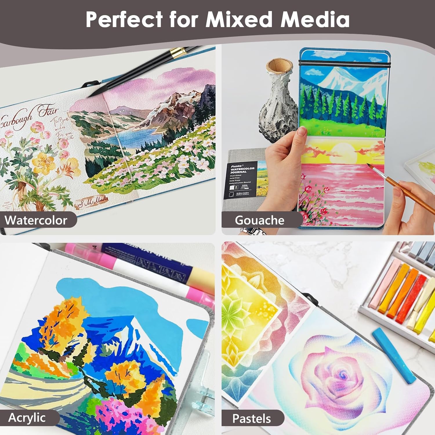 - DURABLE HARDCOVER - The natural-linen hardback cover and elastic band closure protect your pages, and the inner pocket stores some small painting tools, ensuring your artistic creations are safe from wear and tear.