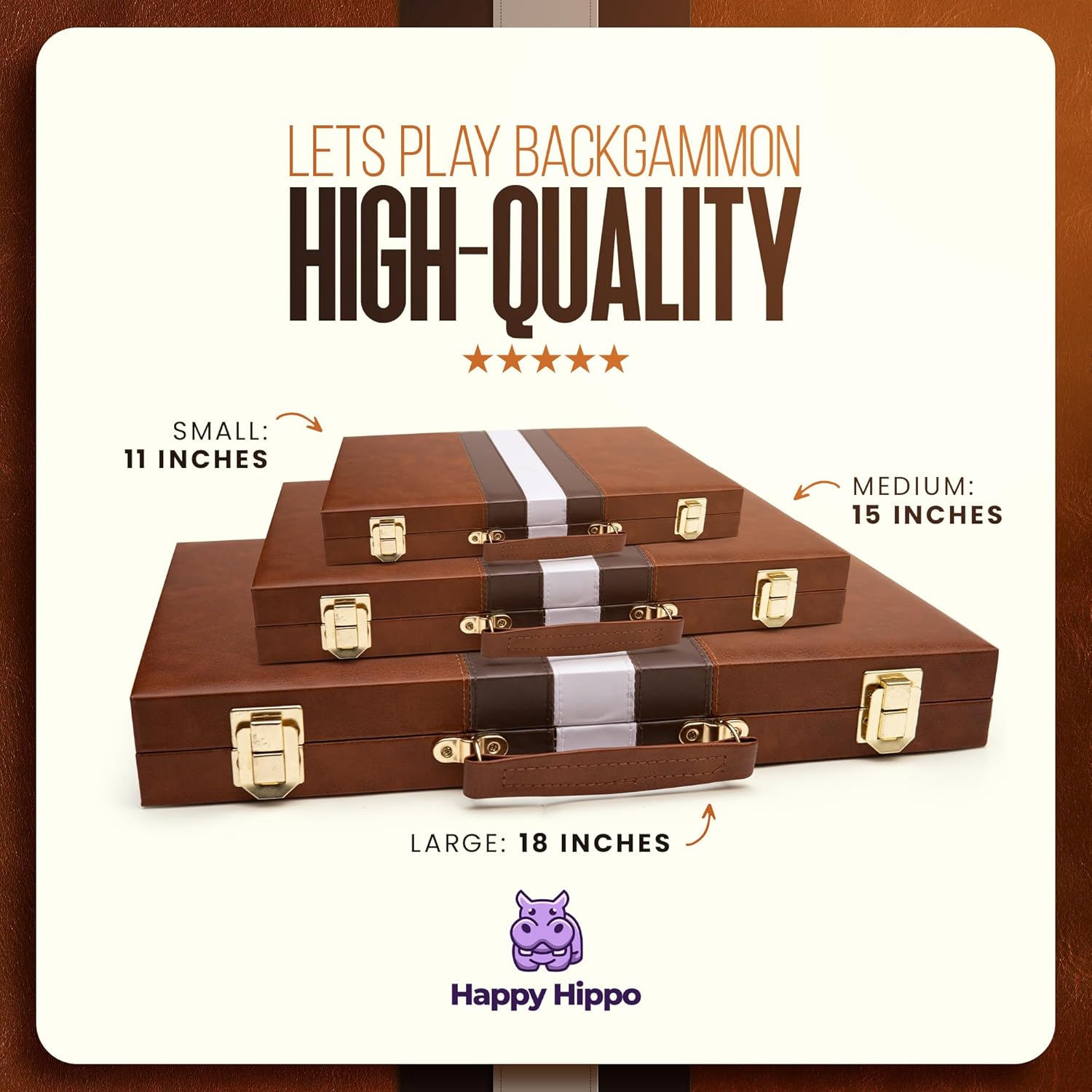 Backgammon Board Game, Deluxe Leather Like Case, Felt Interior, Brown, Classic Backgammon Game, Popular Board Game, Board Games (Large (18"))