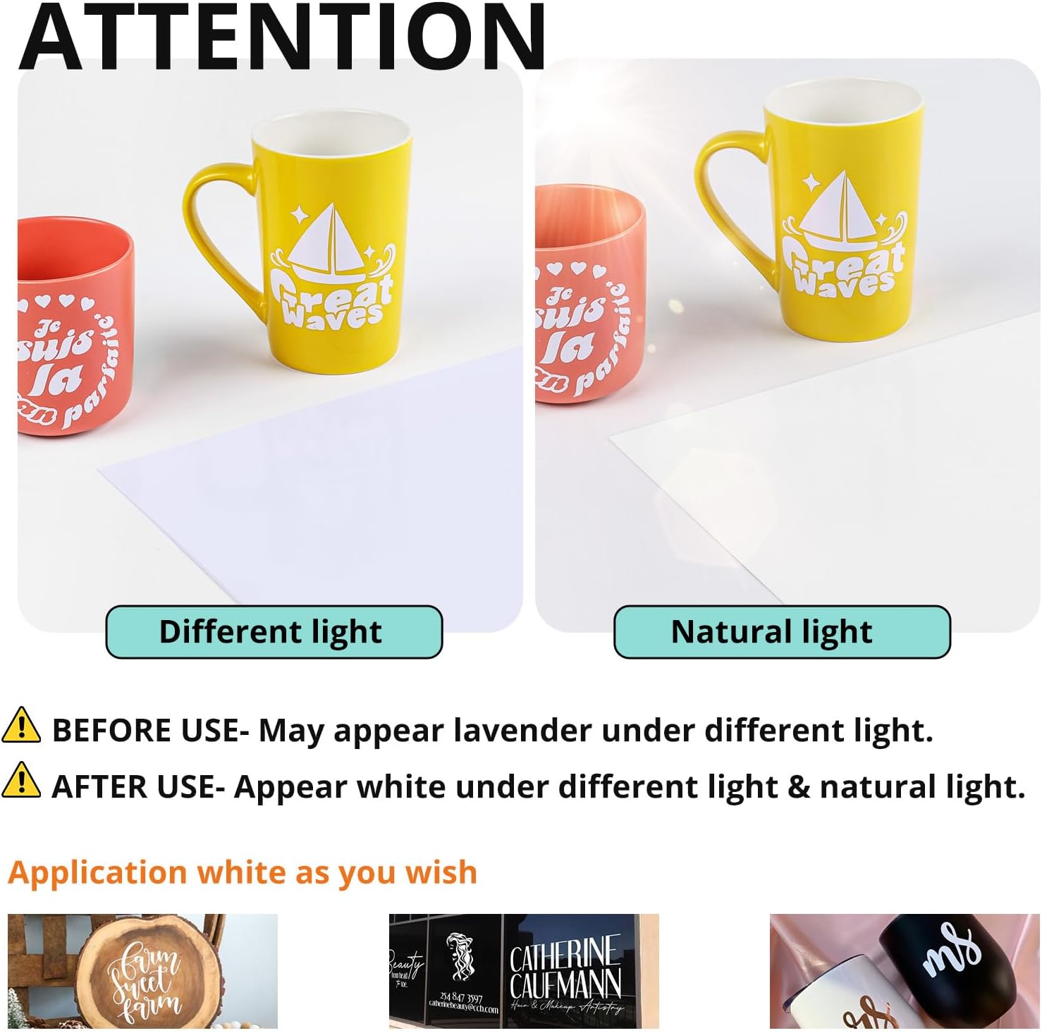 - CLEAR PET BACKING: Using our white and black permanent vinyl with PET backing, you will not need to clean your mat and worry about project damage. No more cheap paper backing ruining and separating from the vinyl for cricut in the cutting process. Notice: when you cut your project, please let the translucent PET backing face down the cutting mat