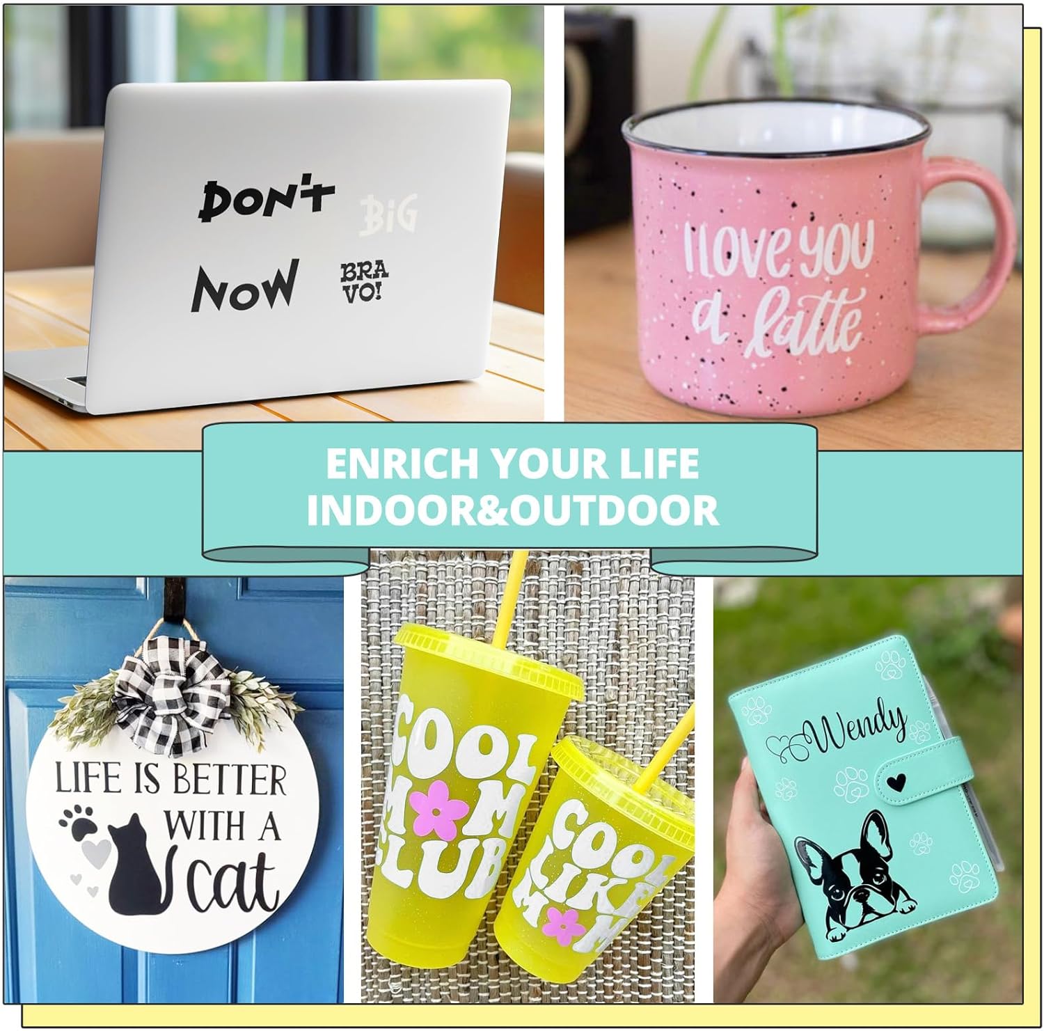 - WIDE APPLICATION: Ideal for medium-term indoor and outdoor Uses including signs, scrapbooking, lettering, marking, striping, decals, phone covers, laptop covers, labels, coffee cups, mugs, and home decor