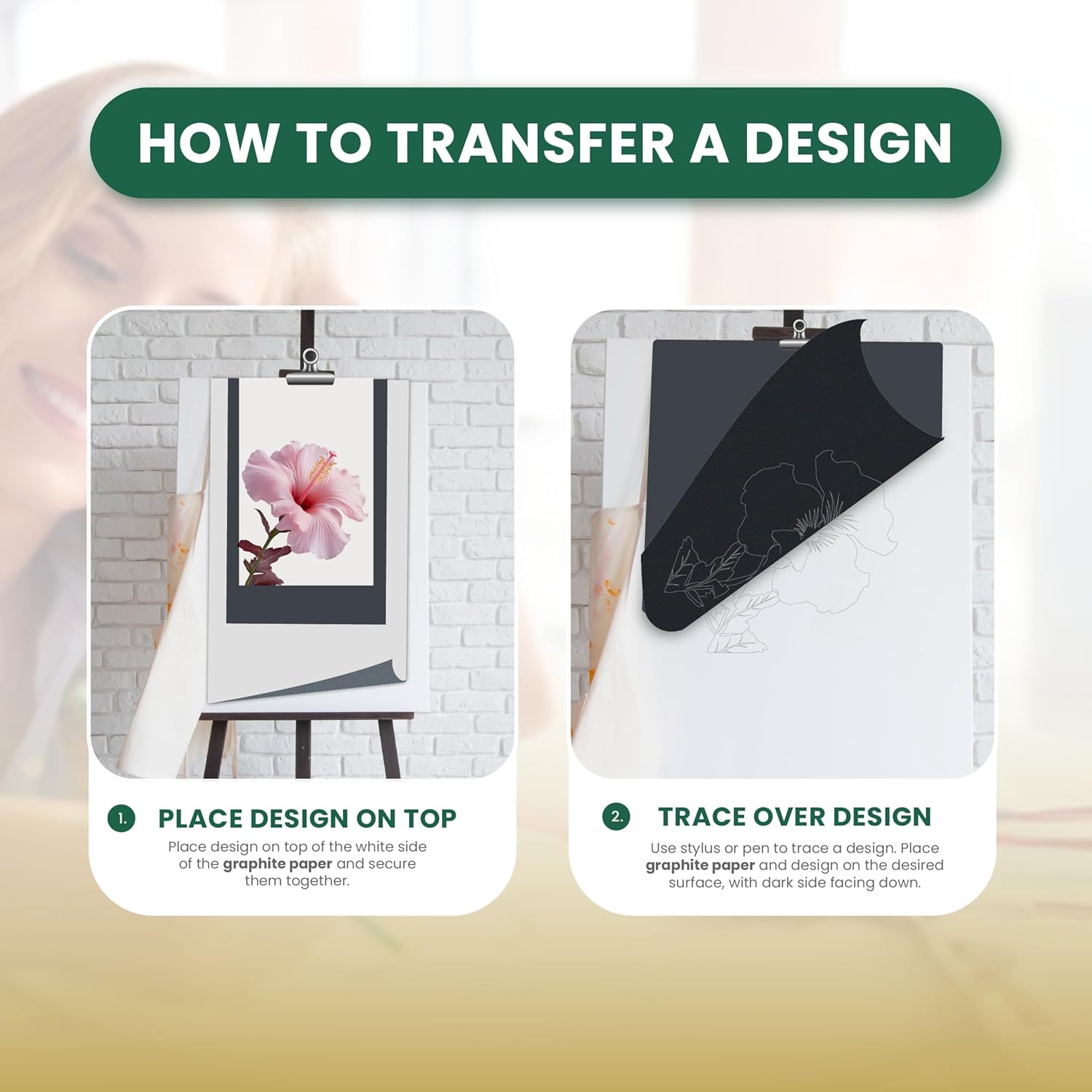 - VERSATILE AND PRECISE FOR MOST SURFACES: Premium transfer paper for drawing and sketching. Easily copy, duplicate, trace and transfer your designs to canvas, paper, wood, glass, metal, toles, ceramic, clay and more.