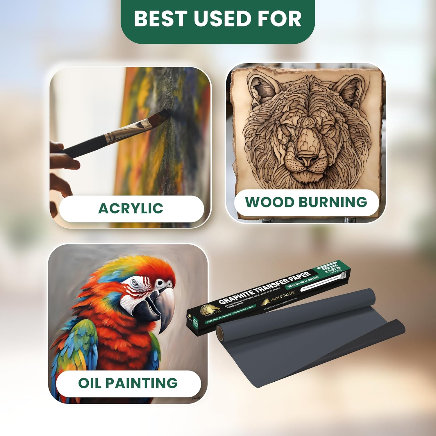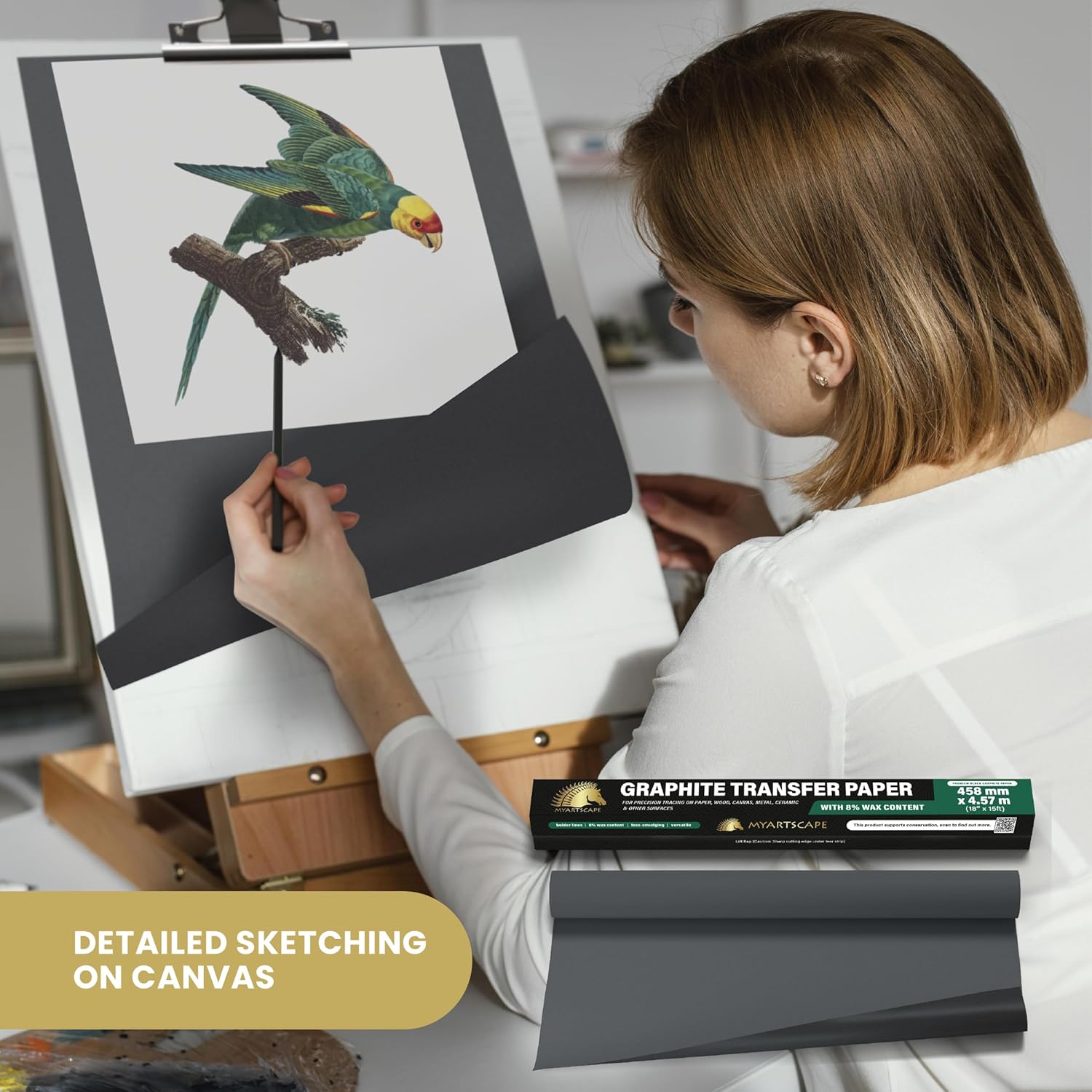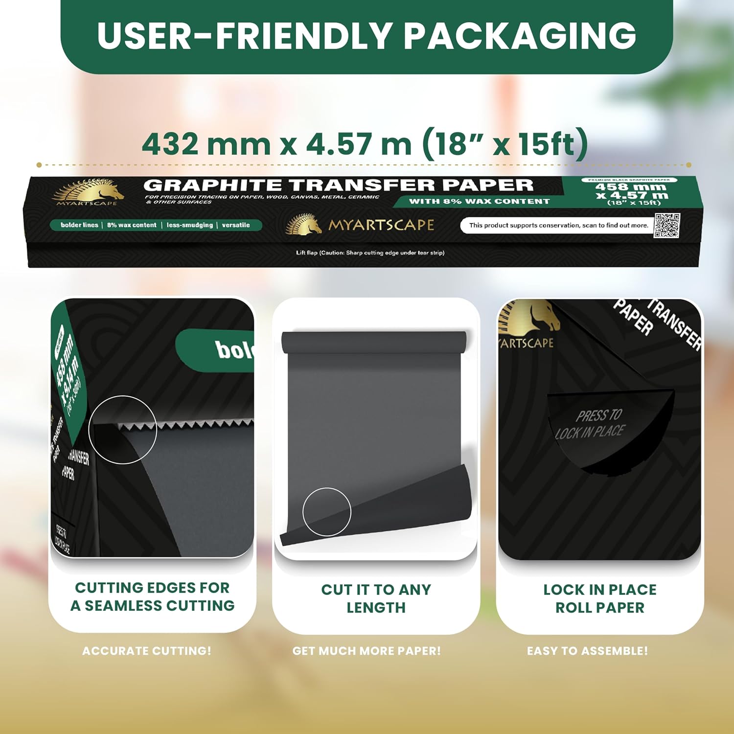- TRACING PAPER ROLL - The MyArtscape Graphite Transfer Paper Roll is longer and wider with 18" x 15ft dimensions which means increased versatility and convenience covering a larger surface, much wider and longer than the other brands.