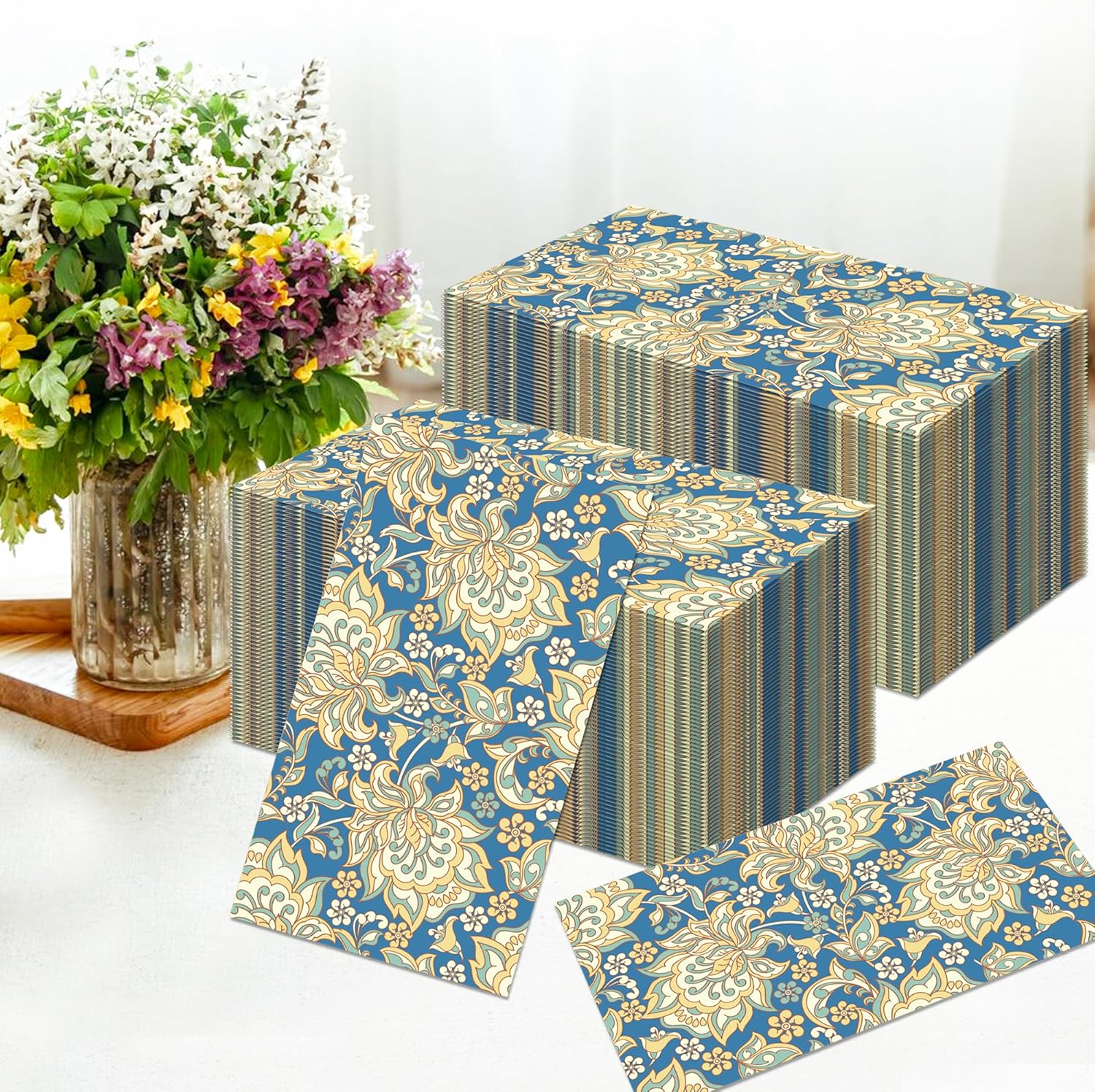 - Disposable Napkins Size: Paper Napkins kinds of patterns floral paper napkins for your choice.Contains 100Pcs Floral Party Napkins of paper napkins; Paper size is 4.5 X 8 inches when folded and 13.5X 16 inches when unfolded to meet your needs and party decoration