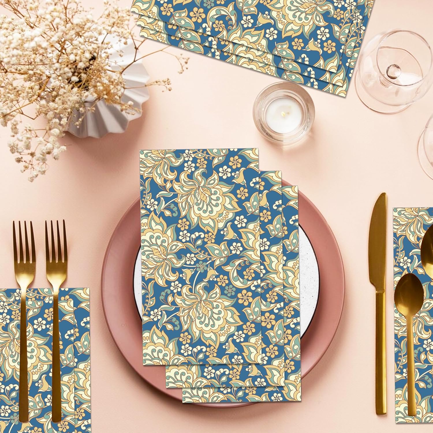 100Pcs William Morris Paper Napkins Disposable Paper Floral Vintage Napkins Decoupage Decorations for Kitchen, Party,Guest Towels,Wedding,baby shower,4.5x8 Inch