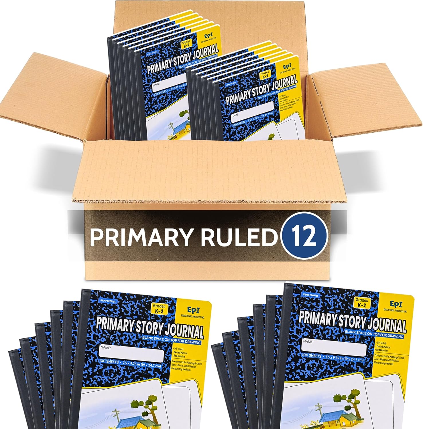 EPI Marble Hardcover Primary Ruled Composition Notebook | 200 Pages (100 Sheets), 9.75 x 7.5 in, Sturdy Sewn Binding | School, Office, Journaling, Notes - 12 Pack