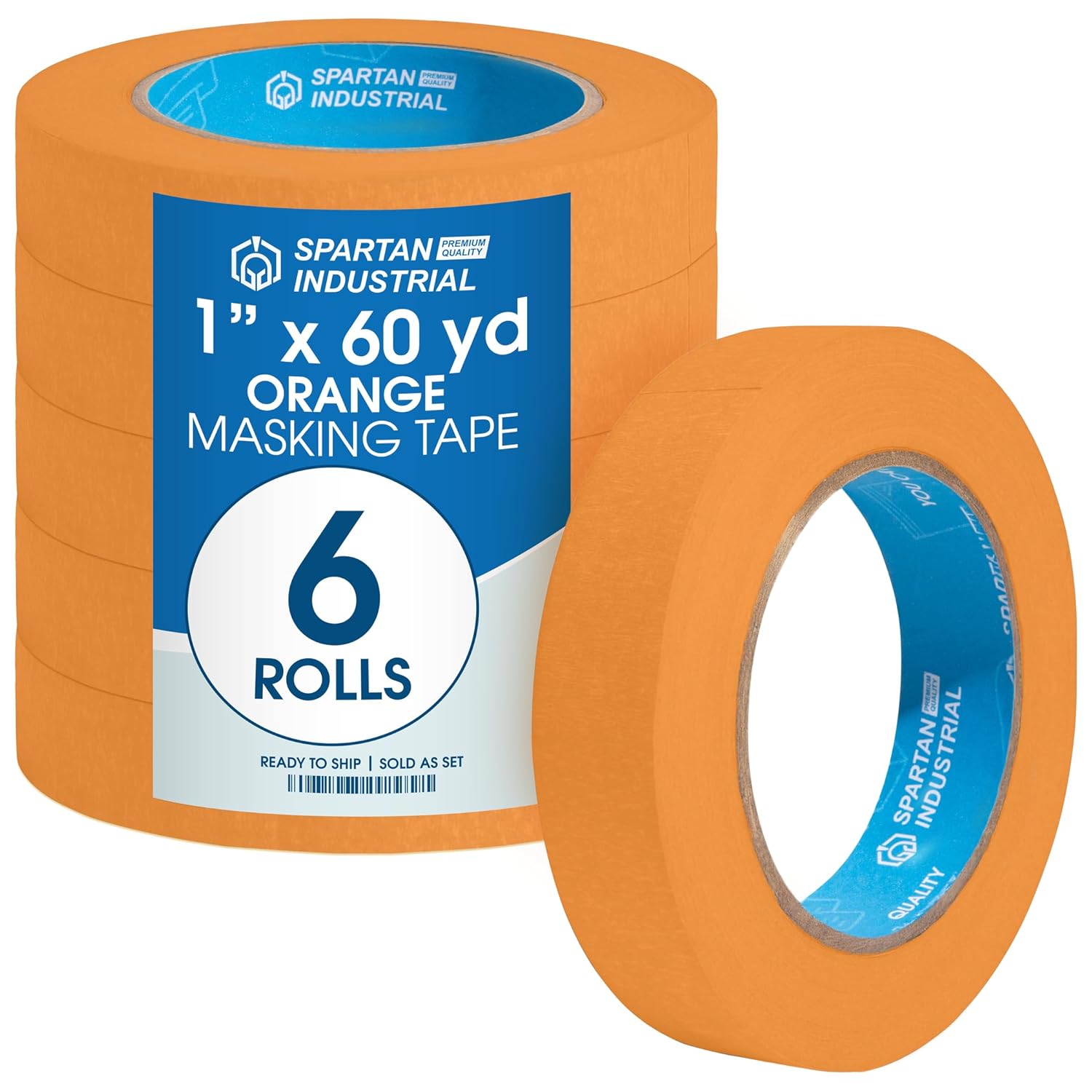Spartan Industrial - 1" X 60 yd Orange Tape - 6 Colored Masking Tape Rolls for Home, Office, School Use - No Residue, 5.5 Mil