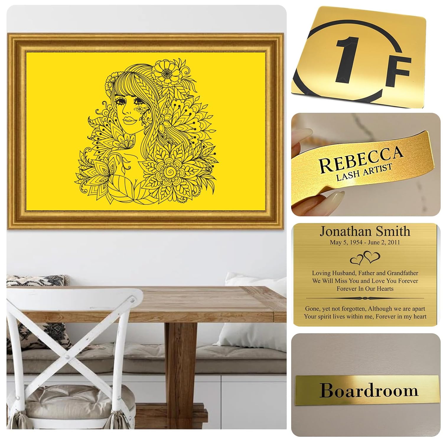 - Gold/Black Two-Tone Engraving Sheet---Designed for laser engraving, the double-layer acrylic material allows for fast, cost-effective engraving, resulting in a high-contrast permanent mark.