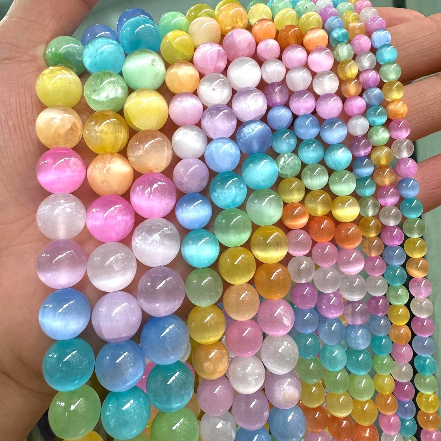 - 【Material】: Genuine Natural Colorful Selenite Gypsum Gemstones ,Round Loose Stone Beads,Energy Stone Healing Power,Help activate the mind.