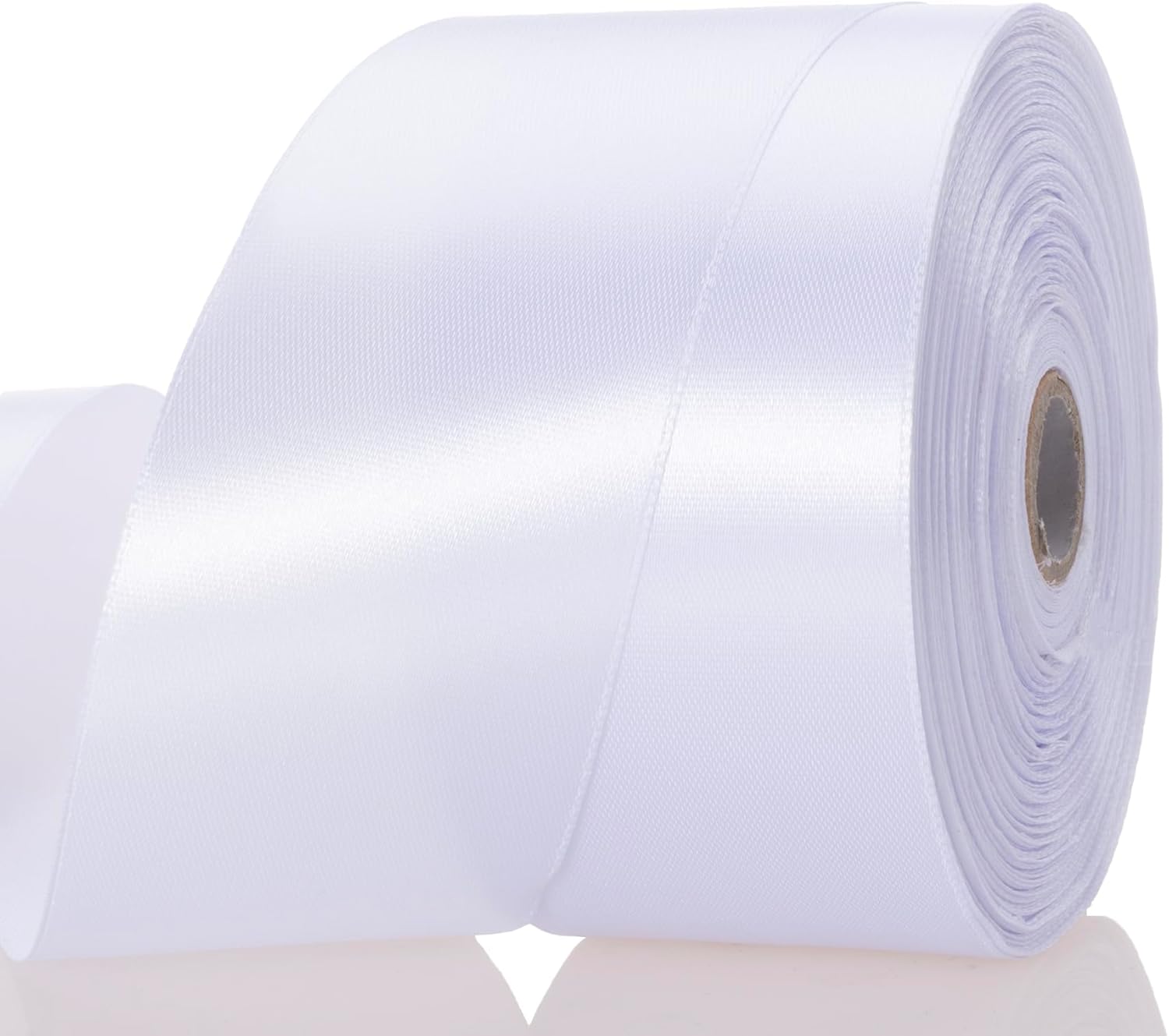 2 Inch White Solid Satin Ribbon, 50 Yards Craft Fabric Ribbon for Gift Wrapping Floral Bouquets Wedding Party Decoration