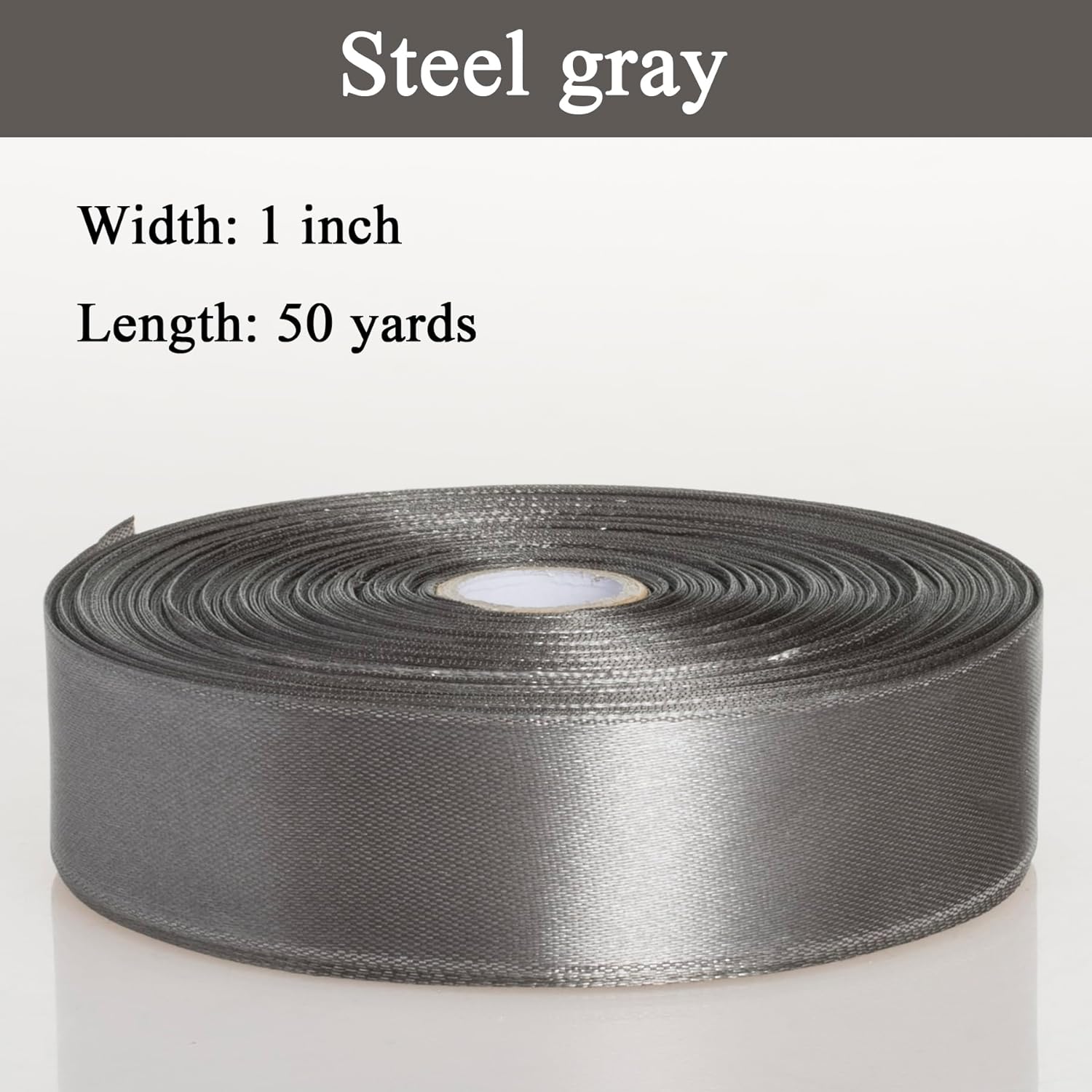 1 Inch Steel Gray Solid Satin Ribbon, 50 Yards Craft Fabric Ribbon for Gift Wrapping Floral Bouquets Wedding Party Decoration