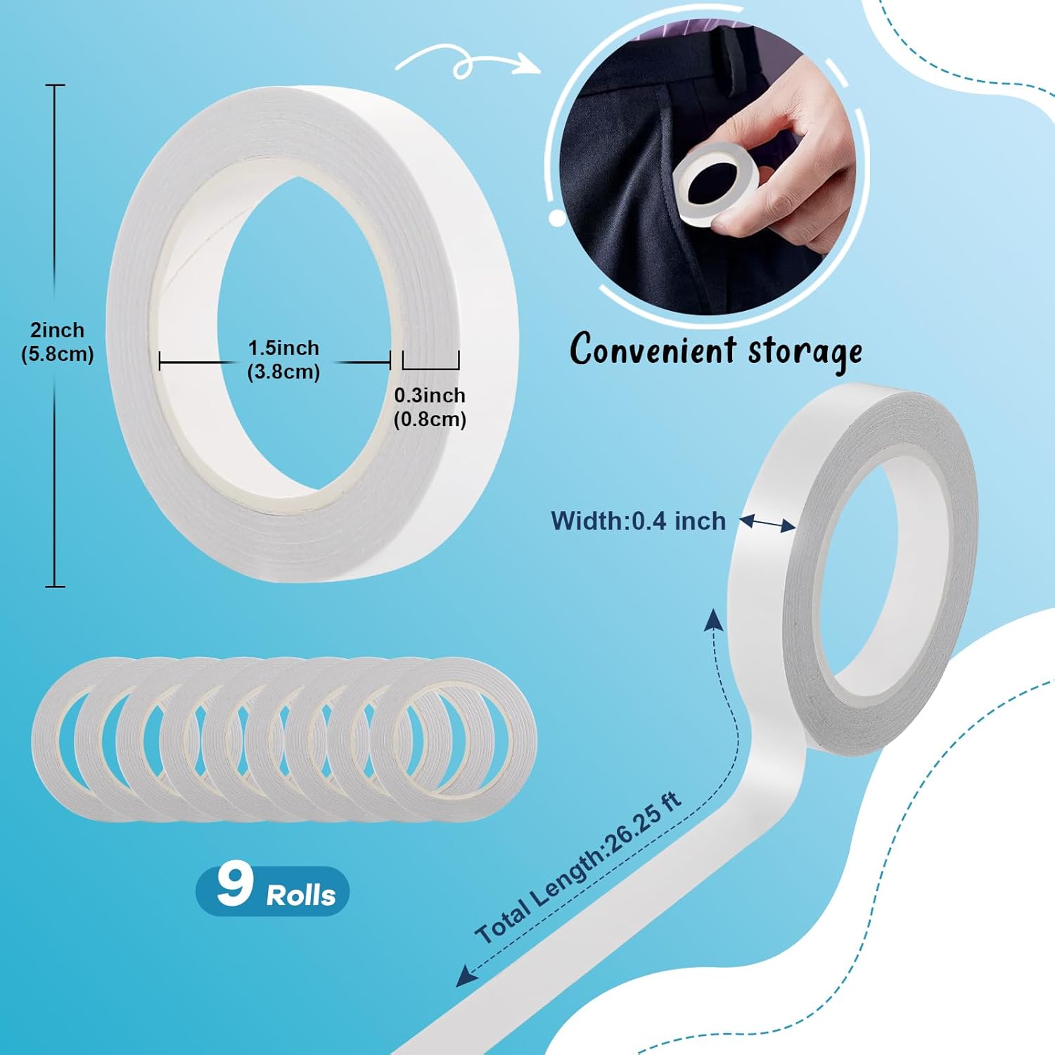 - 【Premium double sided tape】You will get 9 rolls of double sided tape, 2/5 inches X 26.25 feet, long enough to meet your adhesive and working crafting needs. Double side tape for crafts can be easily teared by hand. The double-sided tape is packaged in a paper box for easy access.