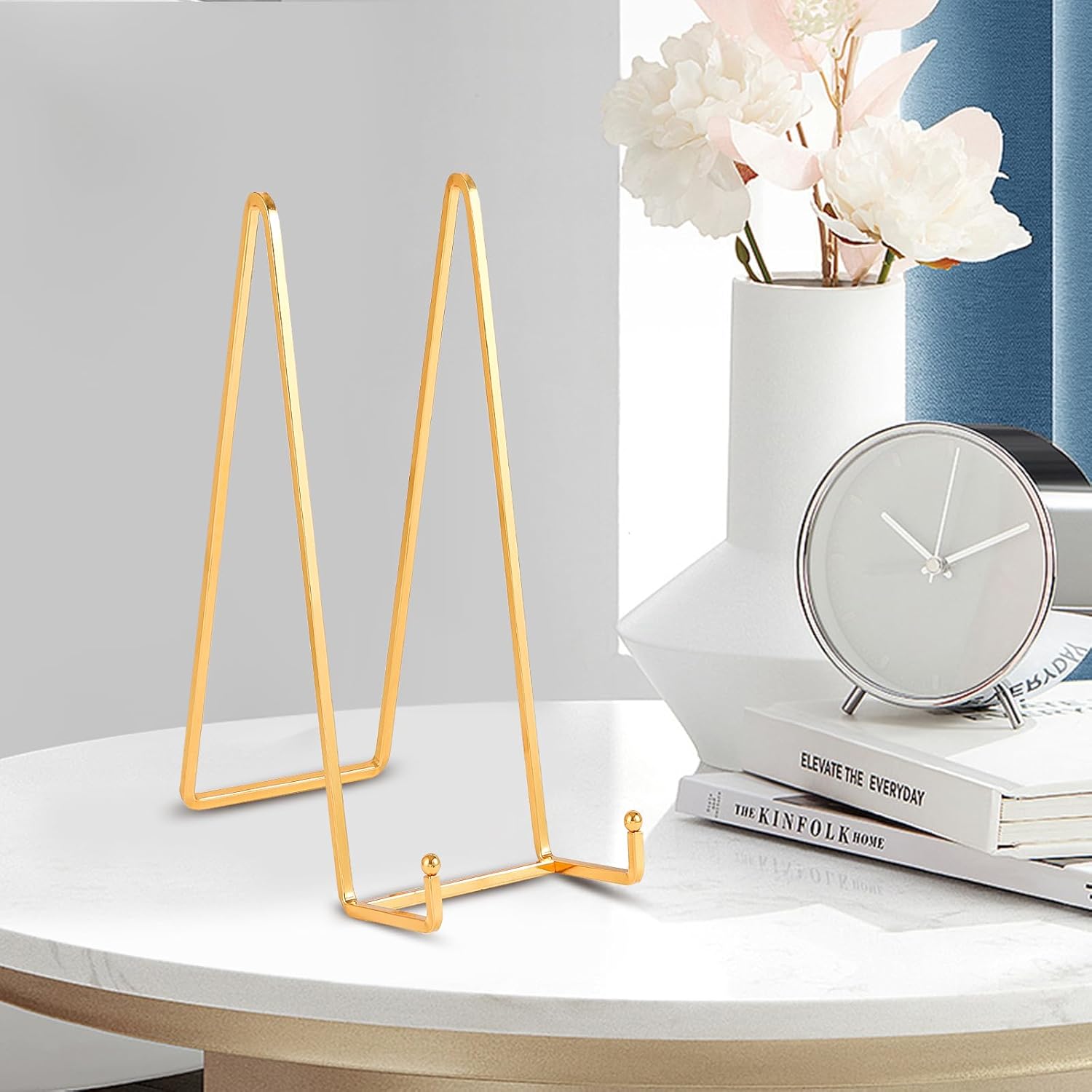 Large Plate Holder Display Stand - 12 inch Super Tall Big Plate Stands for Heavy Duty Display - Metal Picture Frame Stand - Tabletop Easel Stand for Decorative Platter | Plaque | Book - 2 Pack - Gold