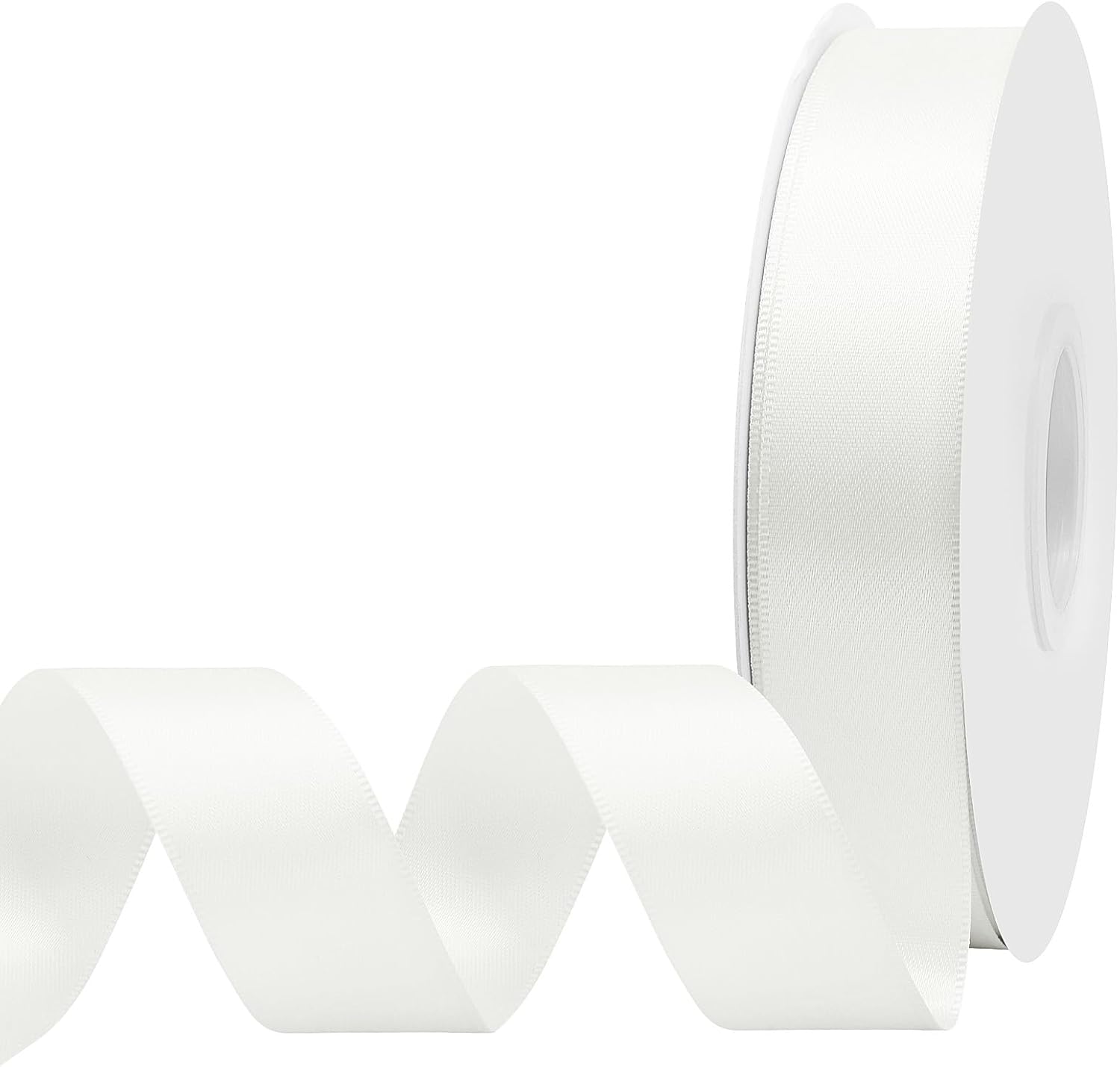 Off White Satin Ribbon 1 Inch X 50 Yards Solid Color Double Faced Ribbons Perfect for Crafts Wedding Decor Bow Making Arts Sewing and More