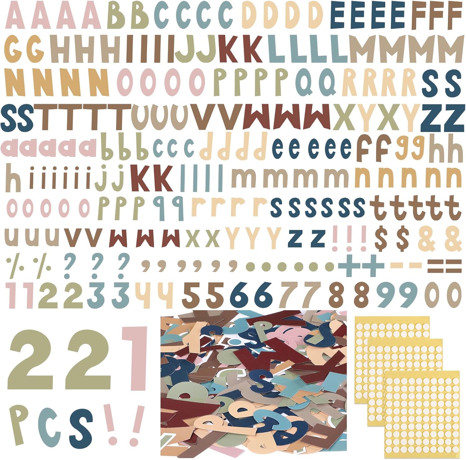 - Value Pack: this 221 pieces alphabet combo cutouts set includes 82 pieces of capital and 89 pieces of lowercase alphabet letters, 20 pieces of numbers, 30 pieces of punctuation marks and 100 pieces double-sided adhesive; Alphabet learning, sentence building, basic math training, punctuation using, satisfying all your basic skill training
