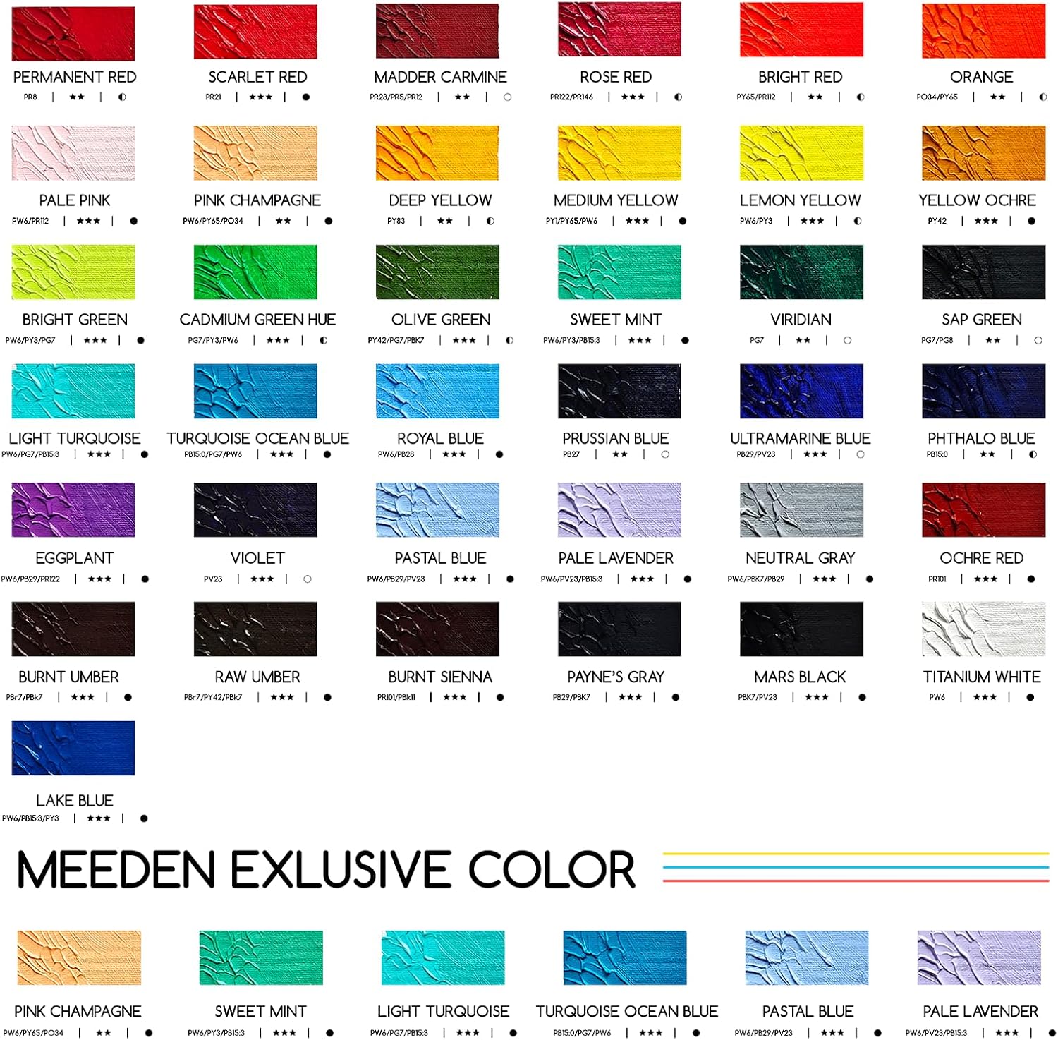 - PROFESSIONAL FORMULA: MEEDEN pursues the best combination of pigments and linseed oil to ensure every color is strictly conformed to the color scale: nothing less and nothing more, only professionalism.