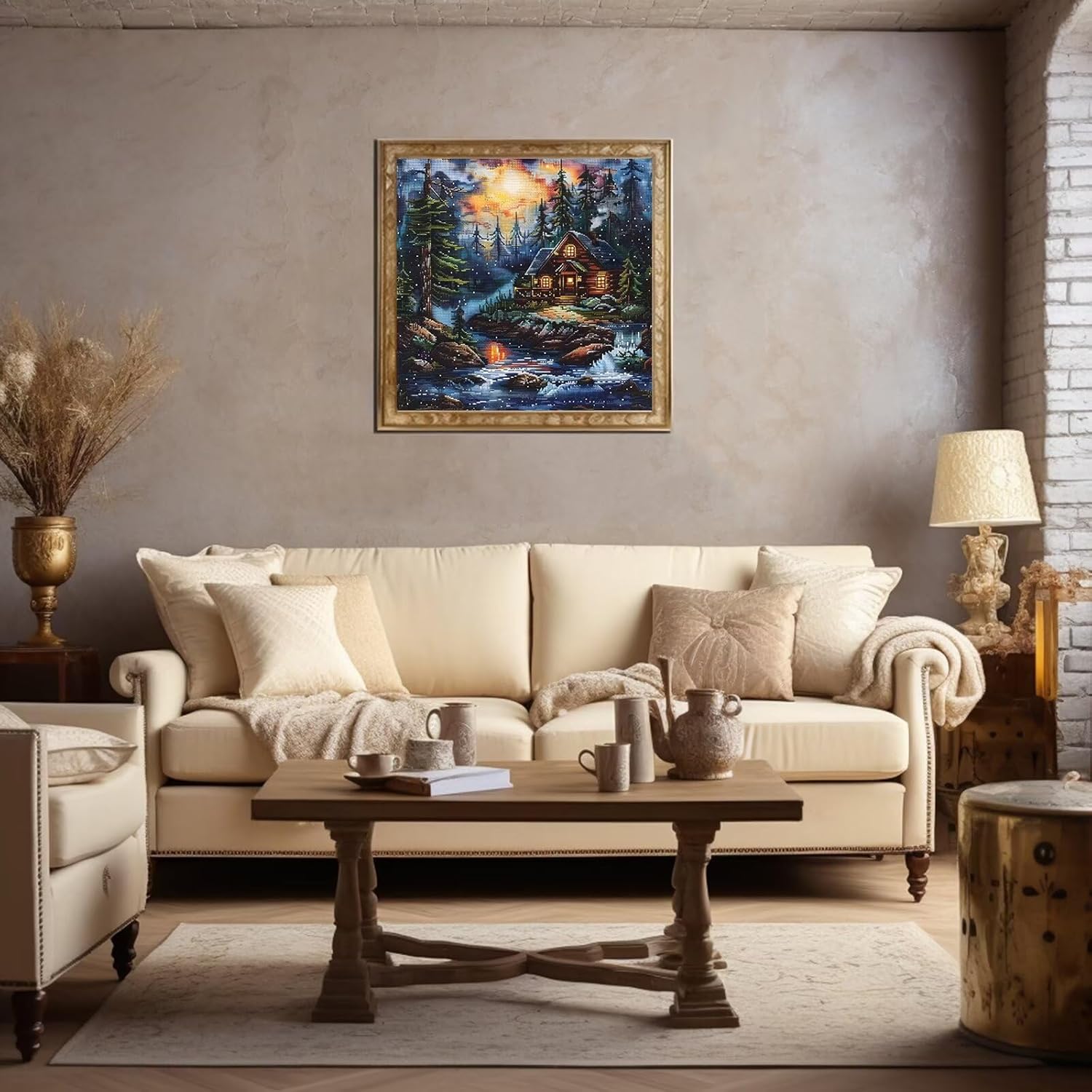 Xinpinzhou Creek Landscape 11ct Cross Stitch Kits, 11 CT Funny Pre Printed Counted Stamped Cross Stitch Embroidery Needlepoint Needlework Patterns Kits for Beginners Adults Crossstitch 40x40 cm