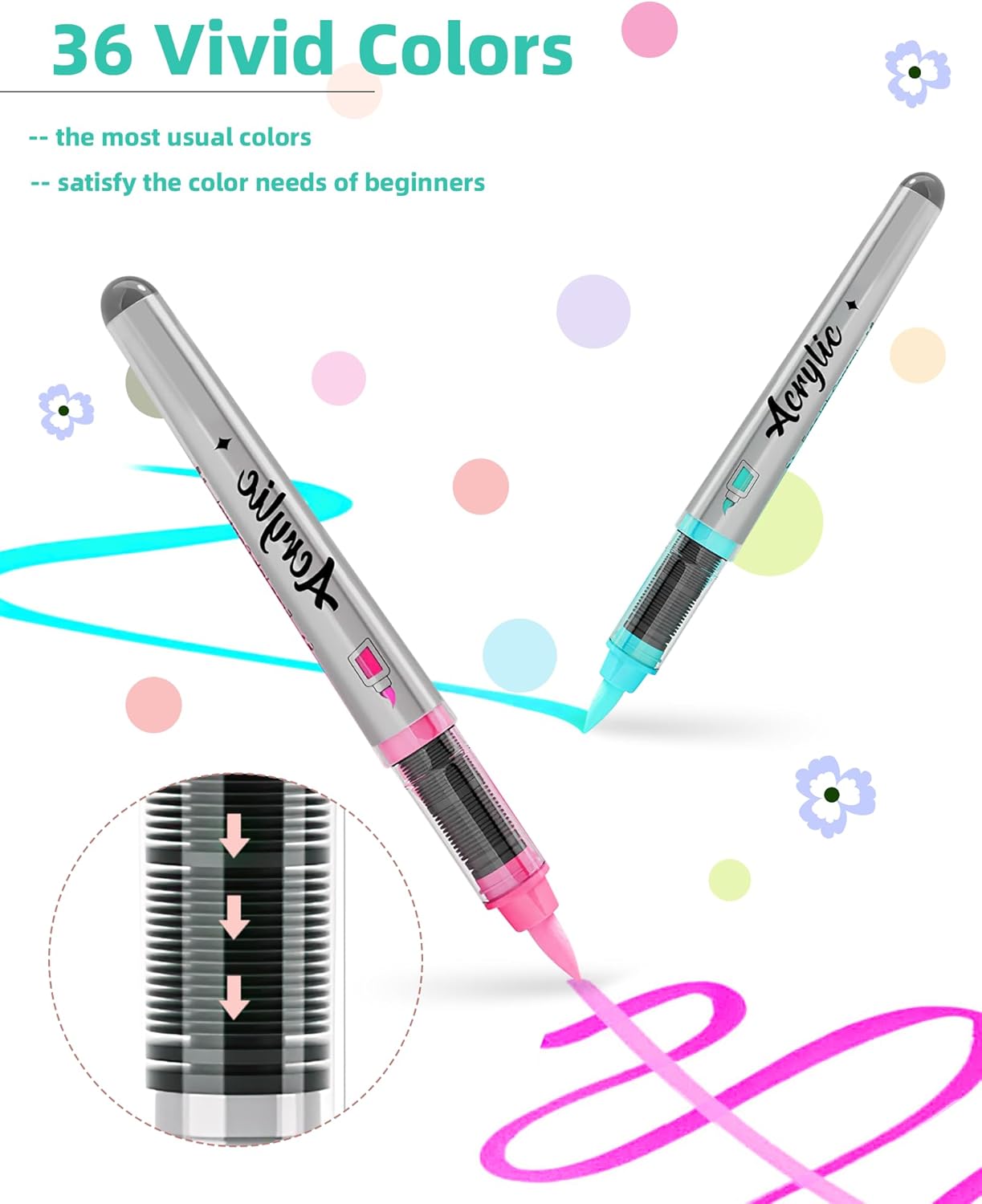 Woomer Premium Acrylic Paint Markers, Auto Liquid Ink, Non-Toxic 36 Colors Acrylic Pens with Soft Brush Tip, Wood Fabric Rock Painting Marker with Case for Teen Artist DIY Crafts