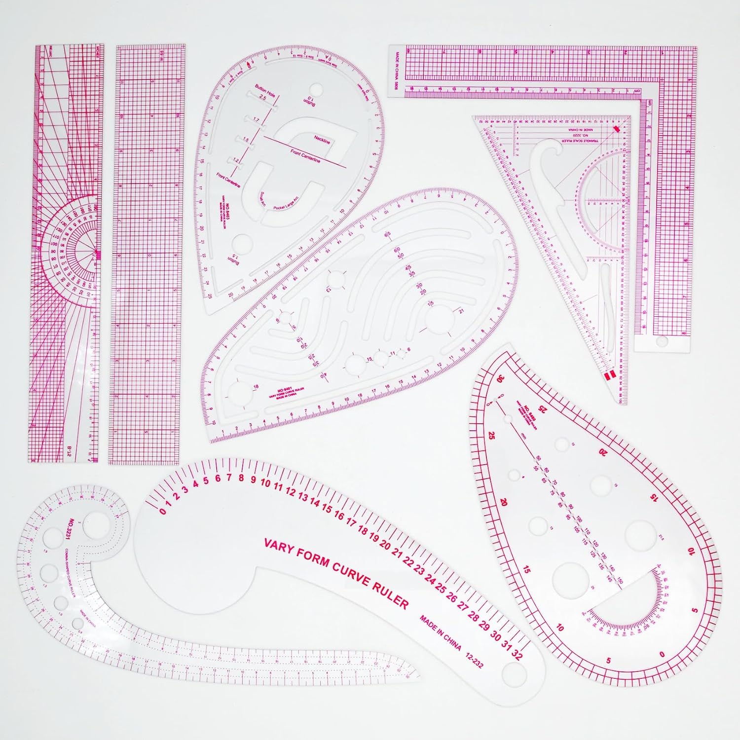 Fashion Clear Metric Sewing Ruler Set,French Curve Pattern Rulers for Beginners, Tailors, Designers, Quilting, Embroidery, Cross Stitch, Crochet, Knitting 9pcs